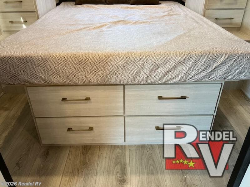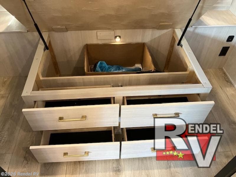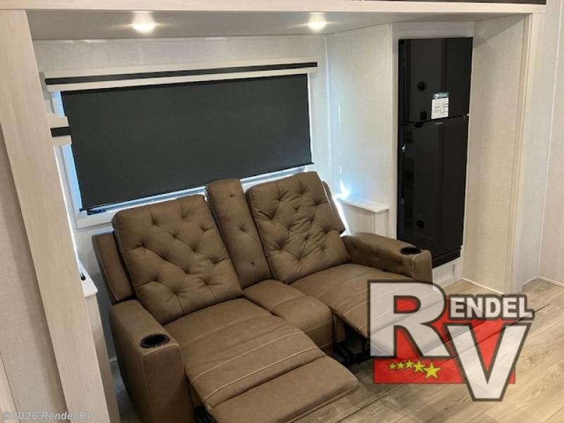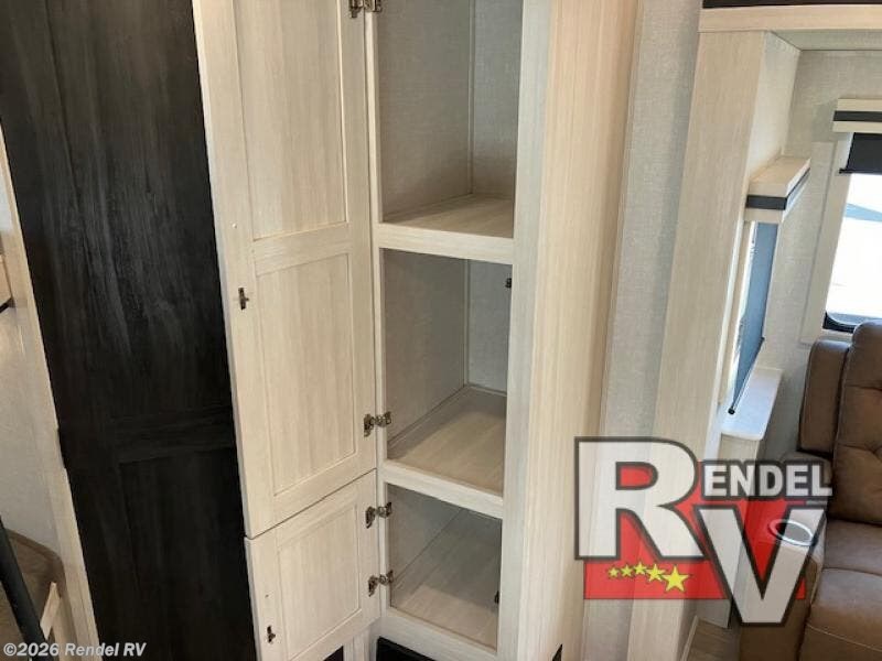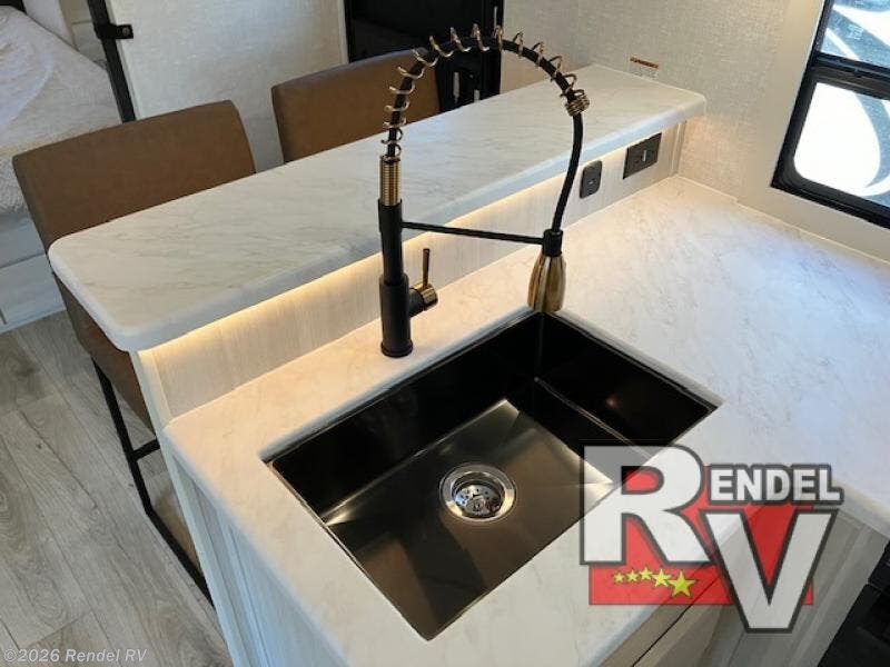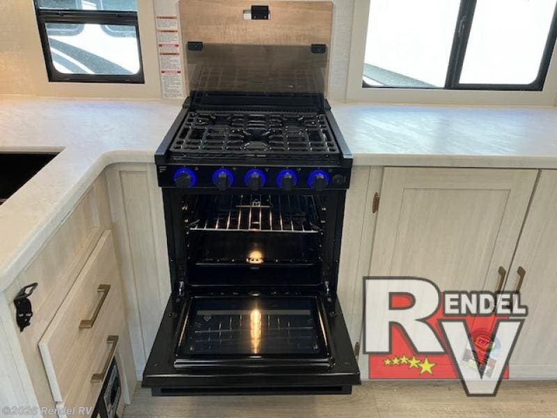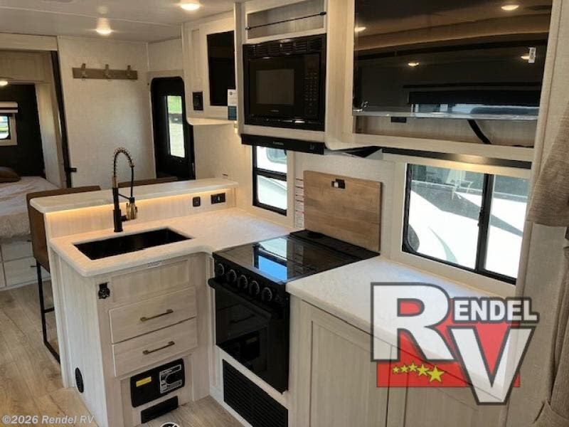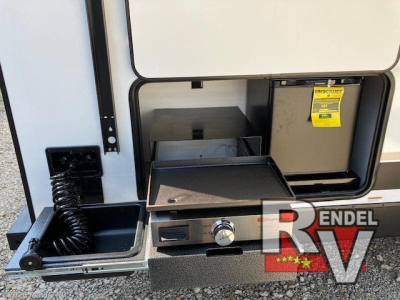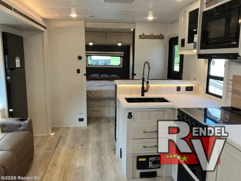 This travel trailer is engineered for easy outdoor living. Set up camp quickly using the rear storage door for kayaks or bikes, whip up lunch on the outdoor kitchen, and enjoy shade under the 15-foot power awning with LED lights. This ensures that you can savor both indoor and outdoor experiences fully.