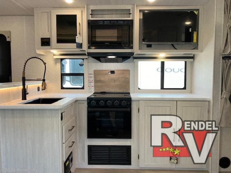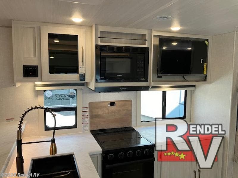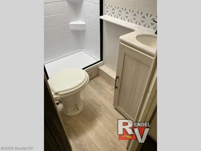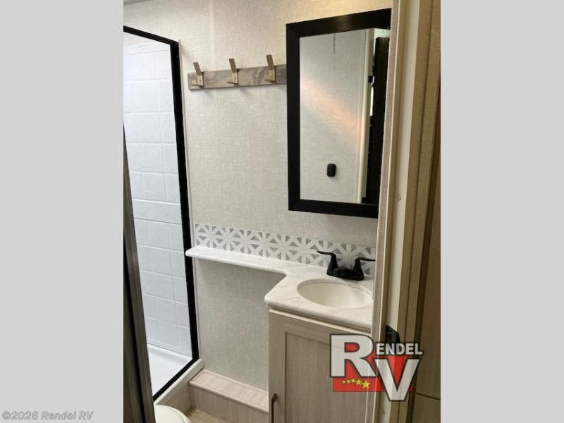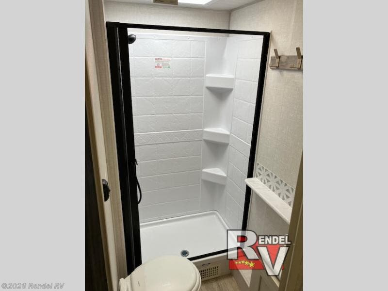 Forest River emphasizes durability with the Azdel composite walls and the power tongue jack for effortless towing. The Goodyear tires and pressure monitoring system ensure peace of mind while on the road. Experience endless hot showers with the tankless water heater, and enjoy a clean living space thanks to the central vacuum system.