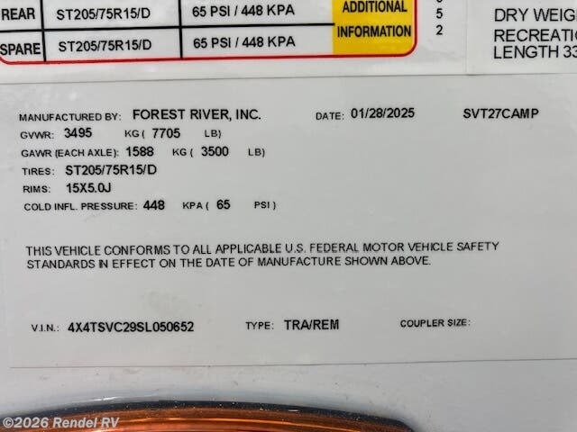 Request More Info on this 2025 Forest River Surveyor Legend X 27CAMP Offered for sale by Rendel RV