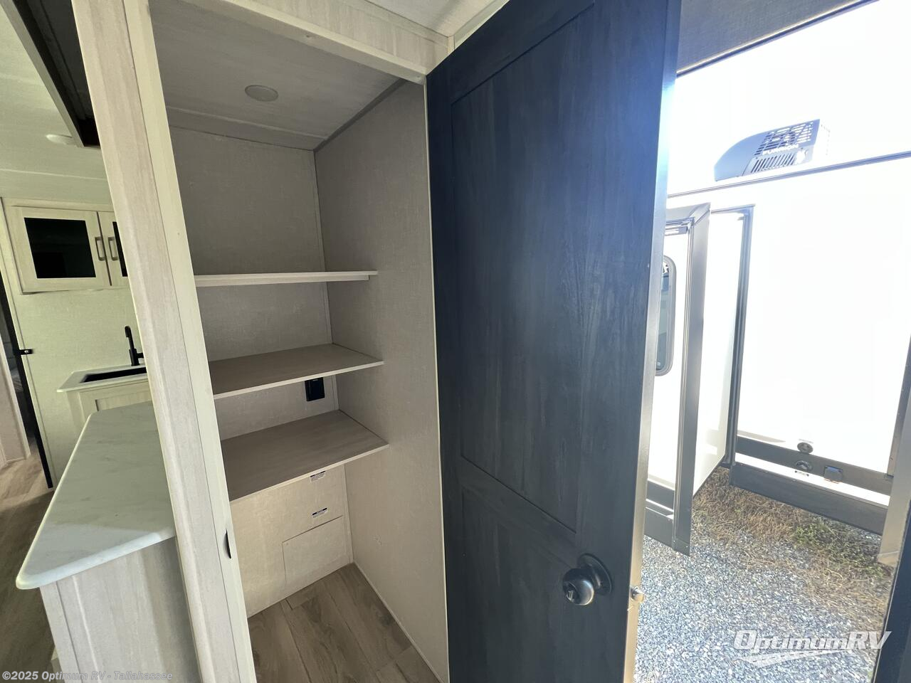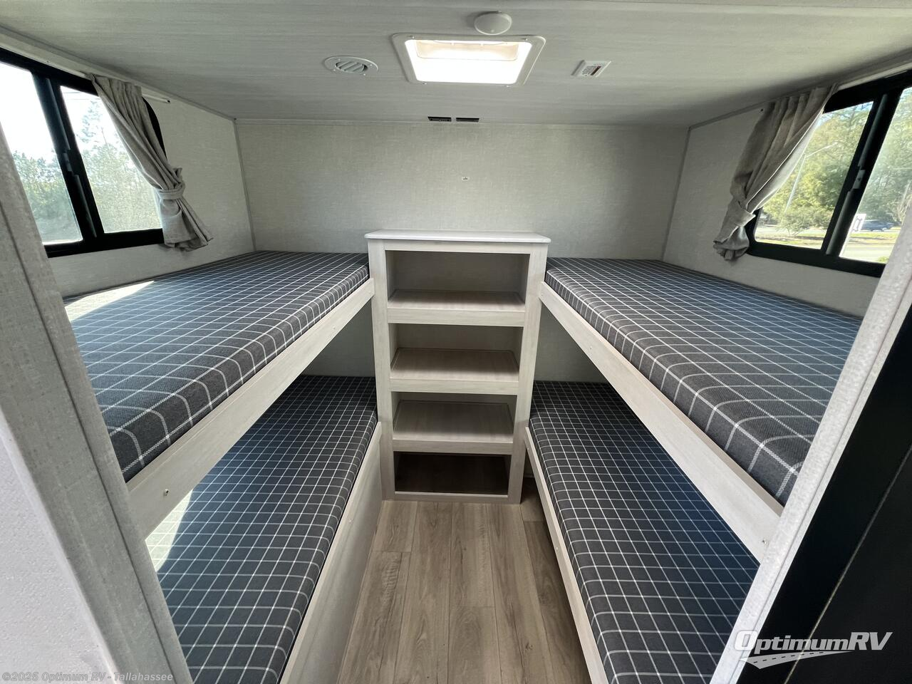 Head to your favorite camping spot with your favorite people in this spacious, dual entry travel trailer! The large slide out houses the booth dinette and sofa where you can relax in the evenings and even let guests sleep over who haven't claimed the quad bunks in the rear bunkhouse. A walk-thru bath is convenient for all, and the full kitchen lets you whip up your best meals in the microwave with an air fryer. And a walk-in pantry with washer and dryer prep makes it easier to go full-time if you choose! When it's time to call it a night, the front master bedroom with a queen bed will provide you with your own space to retreat to, and there are dual bedside wardrobes to keep your clothes organized.