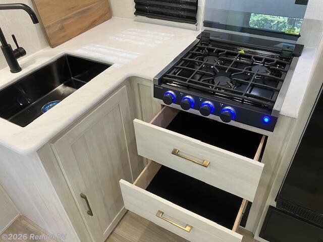 - Luxury Amenities: Microwave with air fryer, a tankless water heater, and a 10 cu. ft. 12V refrigerator ensure convenience.