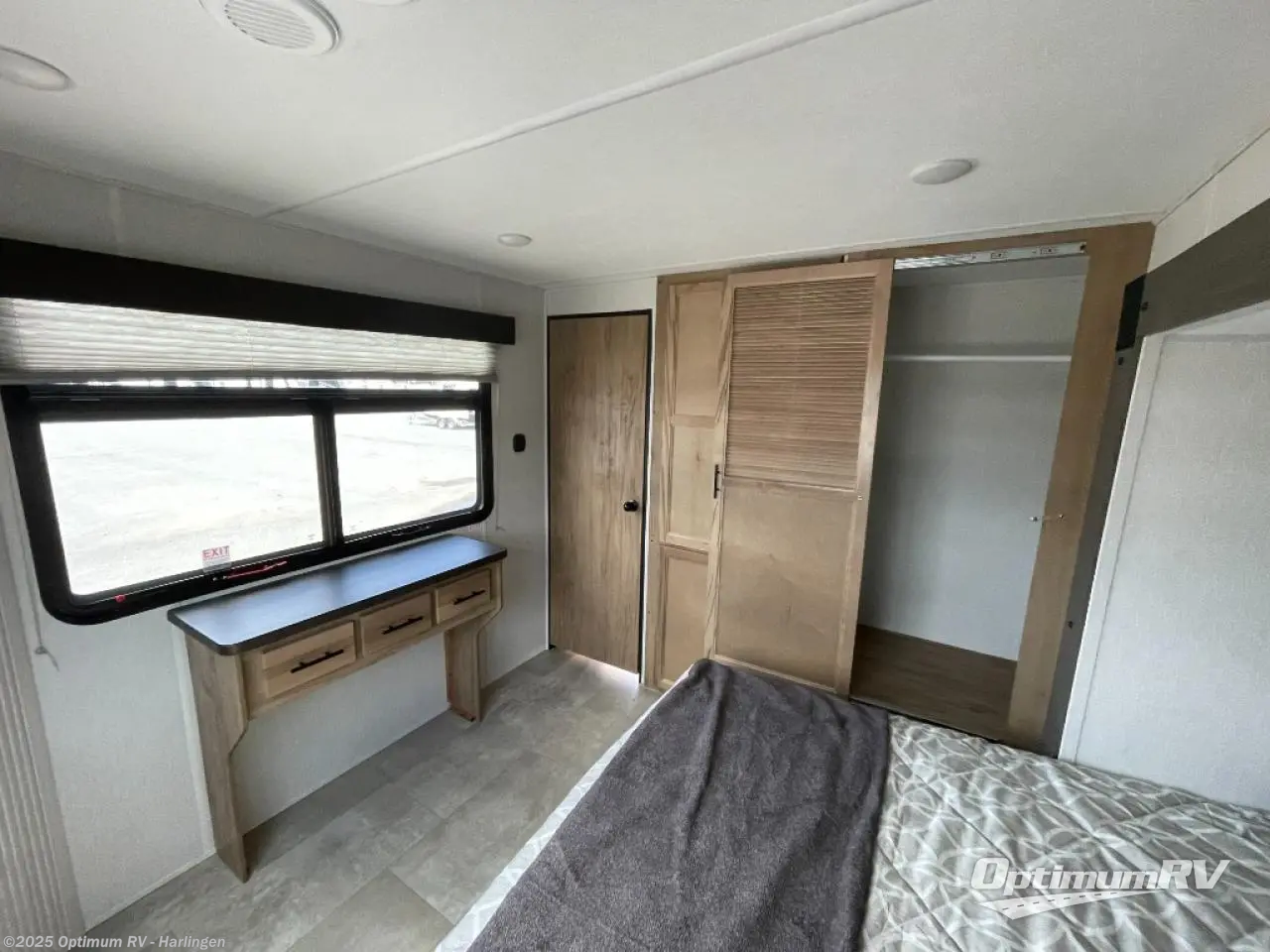 Time spent in this destination trailer will be time well spent! You will appreciate triple entry doors for maximum convenience, plus a spacious full bath that is close by the front private bedroom! Your crew can relax in the middle living area on the L-shaped sofa, or play a game at the free-standing table with chairs. The rear kitchen will be any chef's dream with its island with three stools and all the appliances to create meals each day. This model also features triple slides so you can enjoy more space to relax!