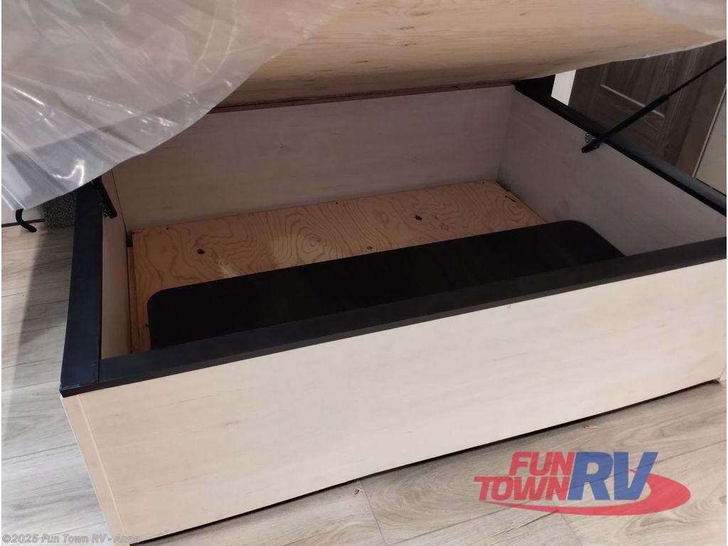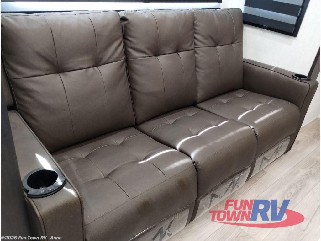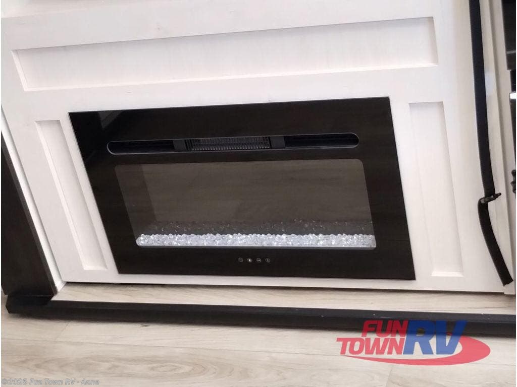 This toy hauler with an 11' separate garage is sure to meet your needs! After you've unloaded your toys, you can relax on the Euro recliners or set up the drop-down queen bed for guests if it's getting late. There is also a window in the garage that opens to the main living area to keep everyone connected, and the flip-up table on the other side of the window provides a place to dine at. A counter peninsula will give the chef of your group more space to prep meals, and the dual opposing slides in this space make it more open. You'll also enjoy the sofa with recliners across from the entertainment center with a fireplace. A full bath with a spacious shower is perfect for cleaning up after a day of trail riding, and the front private bedroom with a queen bed slide is sure to have you feeling right at home!