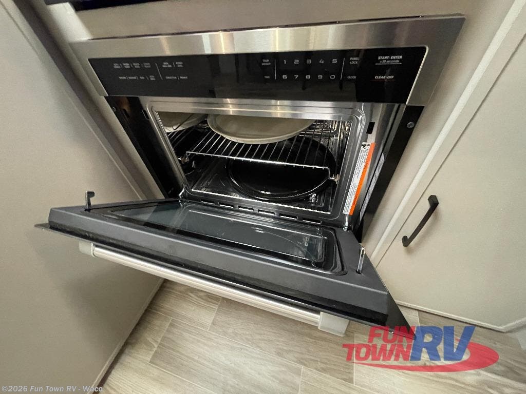 Escape to the great outdoors in this Vibe travel trailer. Once you arrive at your campsite, set up the 20' electric awning with LED lights, then grab the fishing poles from the large pass-through storage. You may want to make a quick lunch on the universal outside kitchen before heading out. If the weather isn't cooperating, you can cook on the three burner cooktop or the oven, and there is even a residential refrigerator to hold all your ingredients. The spacious full bath includes a 36" x 30" walk-in shower to clean up every day, and there is a linen closet to store clean towels and necessities.