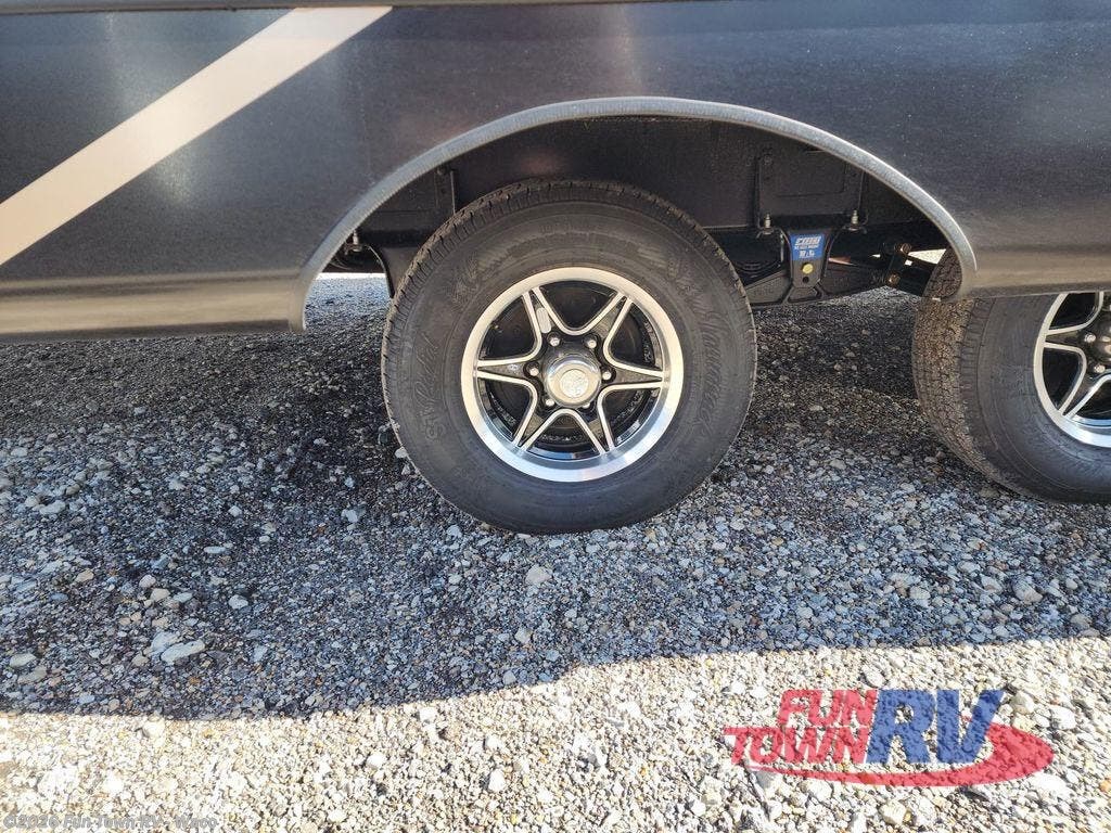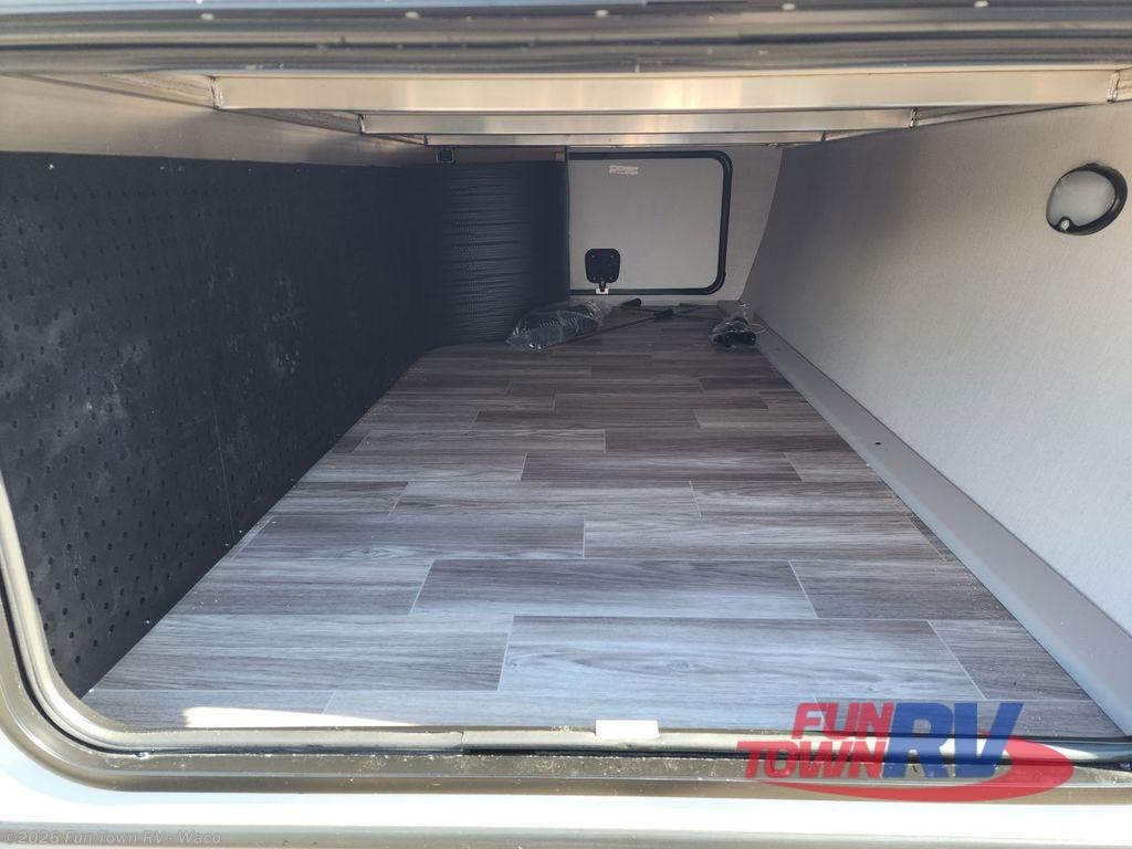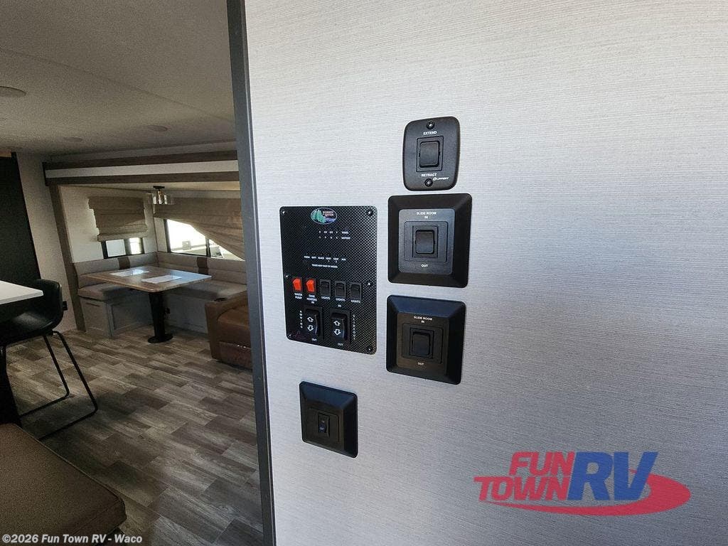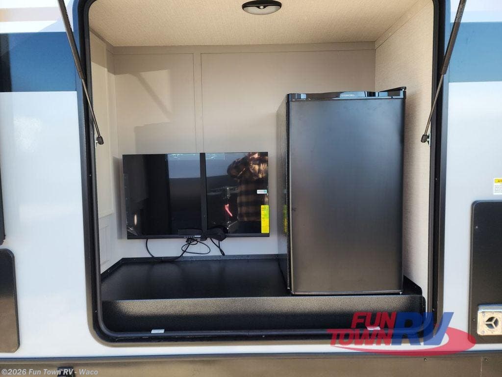 Whether you enjoy spending time outdoors or indoors, there is something for everyone in this travel trailer. The large pass-through storage can store your fishing poles, and the 20' electric awning with LED lights will create an outdoor living space. There is even an outdoor refrigerator with an outside storage cabinet and 32" TV! You will love all the interior space thanks to the dual opposing slides in the main living area, which will give the chef space to work around the kitchen island. Your crew can visit on the tri-fold sofa, theater seating and 5-person dinette while the fireplace is going, but you'll probably find the kids spending most of their time in the private bunkhouse! What more could you want in a travel trailer?!