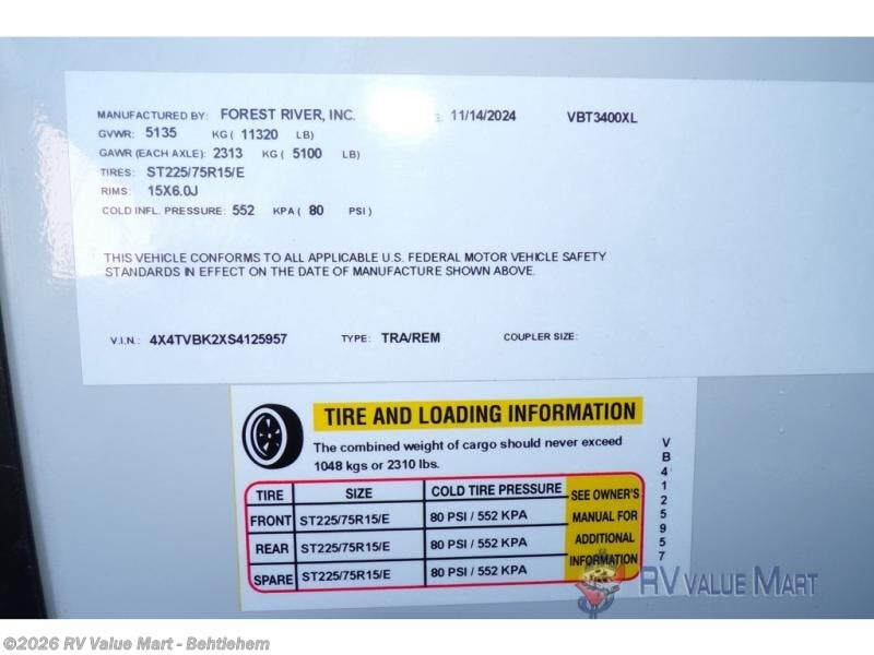 Request More Info on this 2025 Forest River Vibe 3400XL Offered for sale by RV Value Mart - Behtlehem