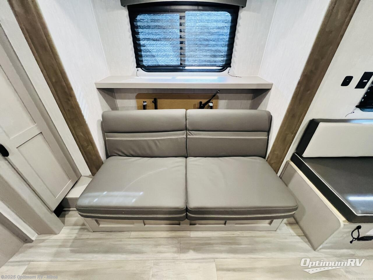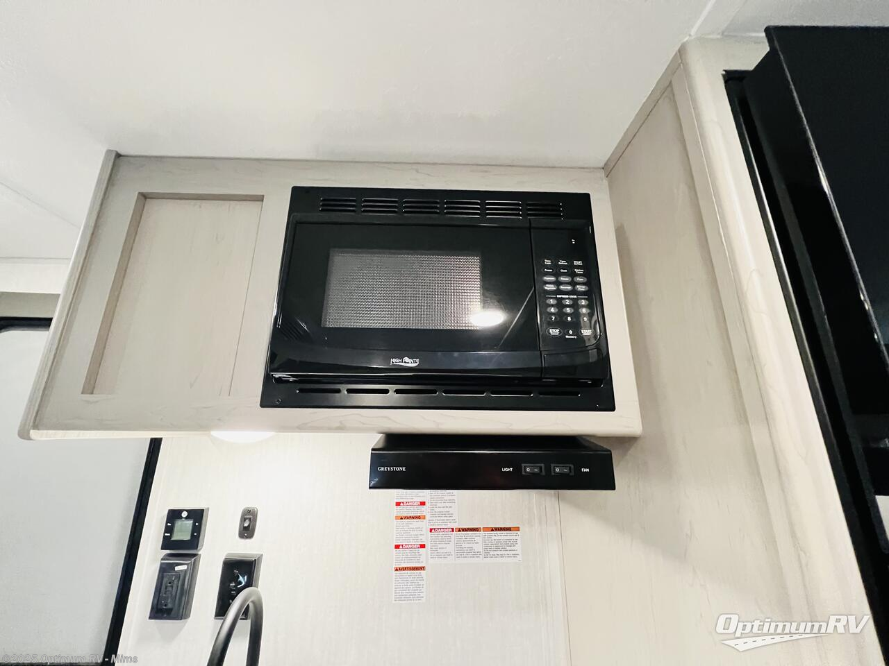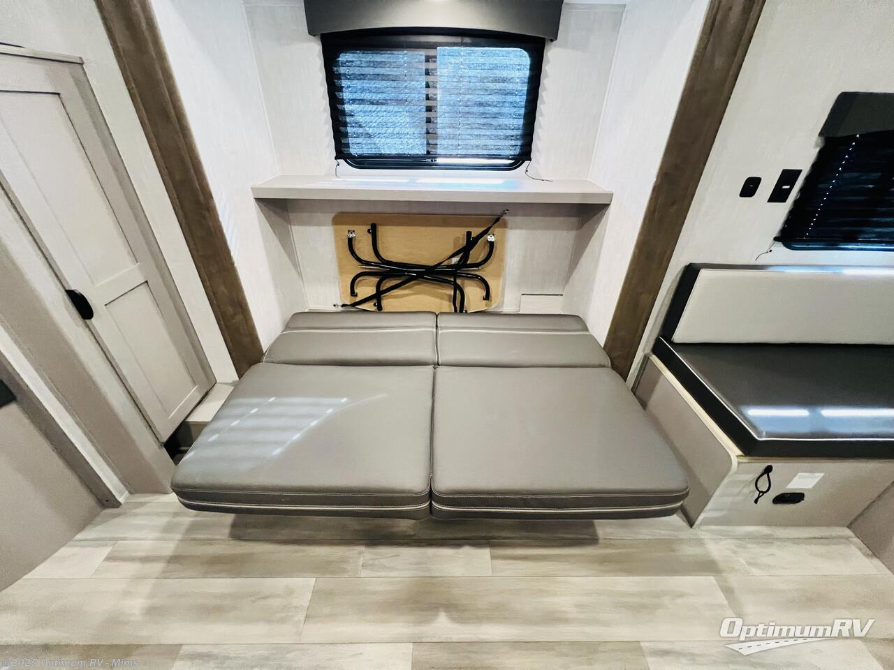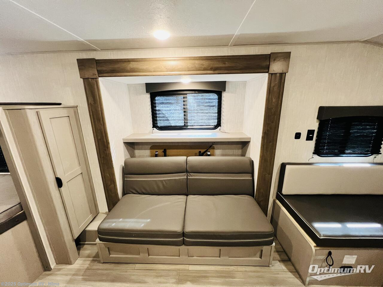 This versatile trailer easily sleeps a family of six and provides plenty of seating thanks to the versatile front hidden Murphy bed and U-dinette. During the day, the U-dinette provides seating for the whole gang. At night, move the table and cushions and flip down a comfortable bed. There is a jackknife sofa slide, and opposite you will find the kitchen area allowing you to easily whip up meals and snacks using the two burner cooktop, sink, overhead microwave oven, and refrigerator. A pantry cabinet is also available for all of your dry goods. At the rear of this unit, you will find sleeping for four on the double-size bunks along the roadside corner, and a full bath with a shower, toilet, and vanity with a sink and medicine cabinet along the curbside corner.