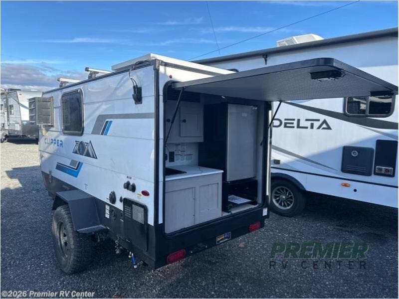 These Forest River Viking ROK travel trailers allow you to camp anywhere you want, even off the beaten path a bit. Each model features electric brakes, easy lube axles, and 15" off-road heavy duty tires. There are frame-mounted stabilizer jacks to help keep your unit secure, and the outside shower with hot/cold water will come in handy when rinsing off hiking gear. A 5K BTU A/C unit and 20K BTU propane furnace will keep you comfortable as you camp, and there are 12V outlets along with 110V outlets to keep your electronics charged. An optional roof top tent can be added if you're needing additional sleeping space, and if you choose the optional Solar Package with a 200W panel and 30A solar controller, you can enjoy off-grid capabilities!