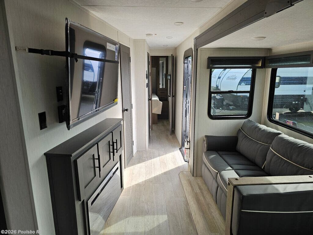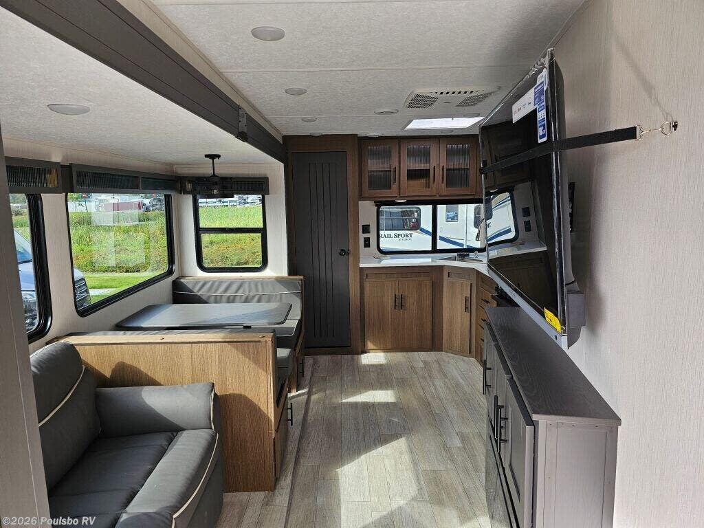 Introducing the 2025 Forest River Wildcat 304MBX, an exceptional travel trailer designed for those who seek adventure on the open road. Measuring an impressive 35.6 feet, this new RV offers ample space and comfort for family trips or gatherings with friends. It boasts a generous sleeping capacity of nine, making it one of the most accommodating options available for larger groups. With two slide-outs, you can enjoy a spacious living area that feels more like home, providing extra room to move around freely. The well-appointed interior includes a bunkhouse, making it a perfect choice for families with children, ensuring everyone has their own cozy nook to relax in after a day of exploration. This trailer is built with a dry weight of 7671 pounds and offers a gross vehicle weight rating of 9568 pounds, providing a stable and secure ride whether you are parked or on the move. Leveling is easy with front and rear manual jacks, supporting quick setup at your campgrounds. Additionally, it features one awning, offering shade and comfort for outdoor lounging. With a hitch weight of 768 pounds, this model is engineered for a responsive towing experience. As a family-owned, award-winning local RV dealer with multiple locations in Sumner, Everett, Kent, and Mt. Vernon, Washington, Poulsbo RV is here to help you find the perfect RV. Stock#: S695, VIN: 4X4TWCF23ST019689.