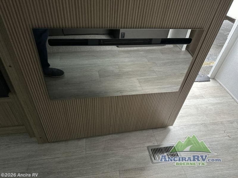 As you escape to the beautiful countryside, or embark across the country to visit family, you'll find that the modern amenities found in this Wildwood travel trailer will deliver the ultimate enjoyment all along the way! Relax on a chaise lounge that includes a table in front so that you can enjoy your morning coffee. When you are ready to face the day ahead, you can grab a towel from the linen closet in the rear bathroom and enjoy the walk-in shower before heading out for a day full of adventure. At night, a custom king bed with Versa Tilt for a great night's rest. You will appreciate the pass-through storage, entertainment center with fireplace, and walk-in pantry for all the goodies!