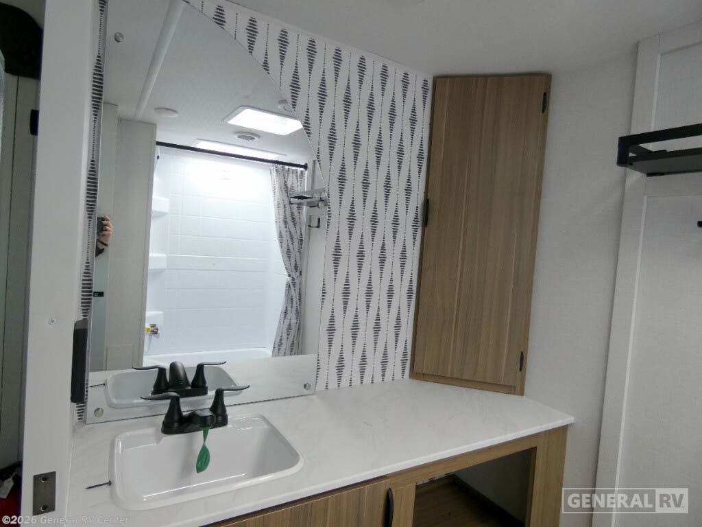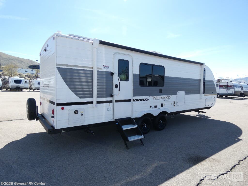 Experience the perfect blend of comfort and versatility with the 2025 Forest River Wildwood X-Lite 25ICE. This travel trailer is designed to elevate your adventures, offering a spacious interior that effortlessly accommodates up to six guests. The front bedroom boasts a versatile custom king bed, ensuring restful nights under the stars. The center living area, featuring a cozy Versa-Lounge and a charming fireplace, invites you to unwind after a day of exploration. The kitchen is equipped with a full-size electric refrigerator, ample storage, and a three-burner cooktop, making meal preparation a breeze. The rear bath, complete with a tub/shower combo, provides the convenience of home while on the road. With a length of just under 30 feet, this RV offers a perfect balance of space and maneuverability. The 16 ft. powered retractable awning extends your living space outdoors, creating an ideal setting for relaxation or entertaining. Whether you're embarking on a weekend getaway or an extended journey, the Wildwood X-Lite 25ICE is your ticket to unforgettable experiences. For more details on this exceptional model, visit your nearest General RV dealership.