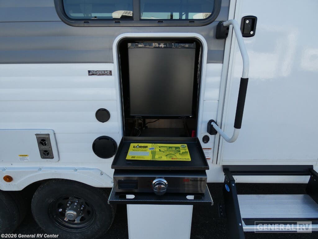 Experience the perfect blend of comfort and adventure with the 2025 Forest River Wildwood 26DBUD. This RV is designed to accommodate up to 10 sleepers, making it ideal for family getaways or trips with friends. The spacious interior features a versatile floorplan with a center kitchen and living area, ensuring you have all the space you need to relax and entertain. The double over double bunks offer cozy sleeping quarters, while the king bed promises a restful night's sleep. The Wildwood 26DBUD is equipped with an 18 ft. powered retractable awning, perfect for enjoying the outdoors in style. The exterior camp kitchen is a delightful addition for those who love to cook under the open sky. Inside, the full-size electric refrigerator and three-burner cooktop make meal preparation a breeze. With its automatic heater and ample storage options, including a walk-in pantry, this RV ensures comfort and convenience on every journey. For more details, visit your nearest General RV Dealership Location.