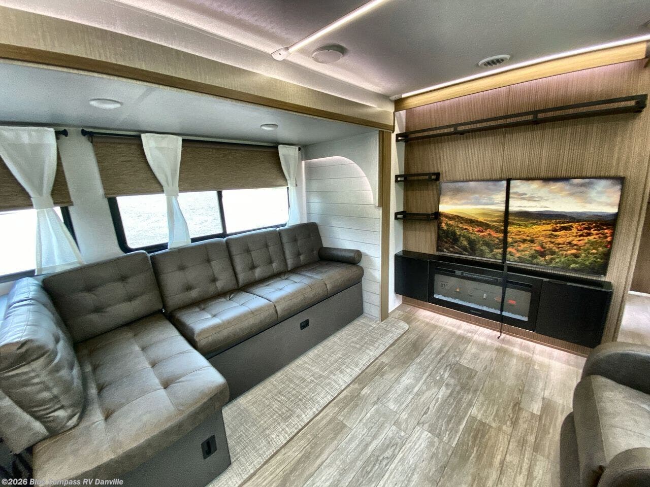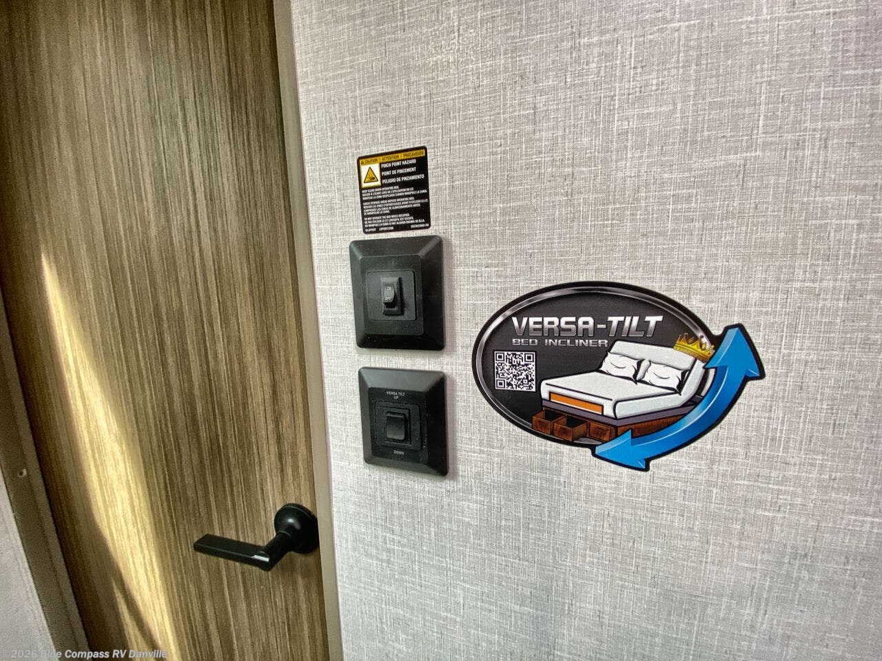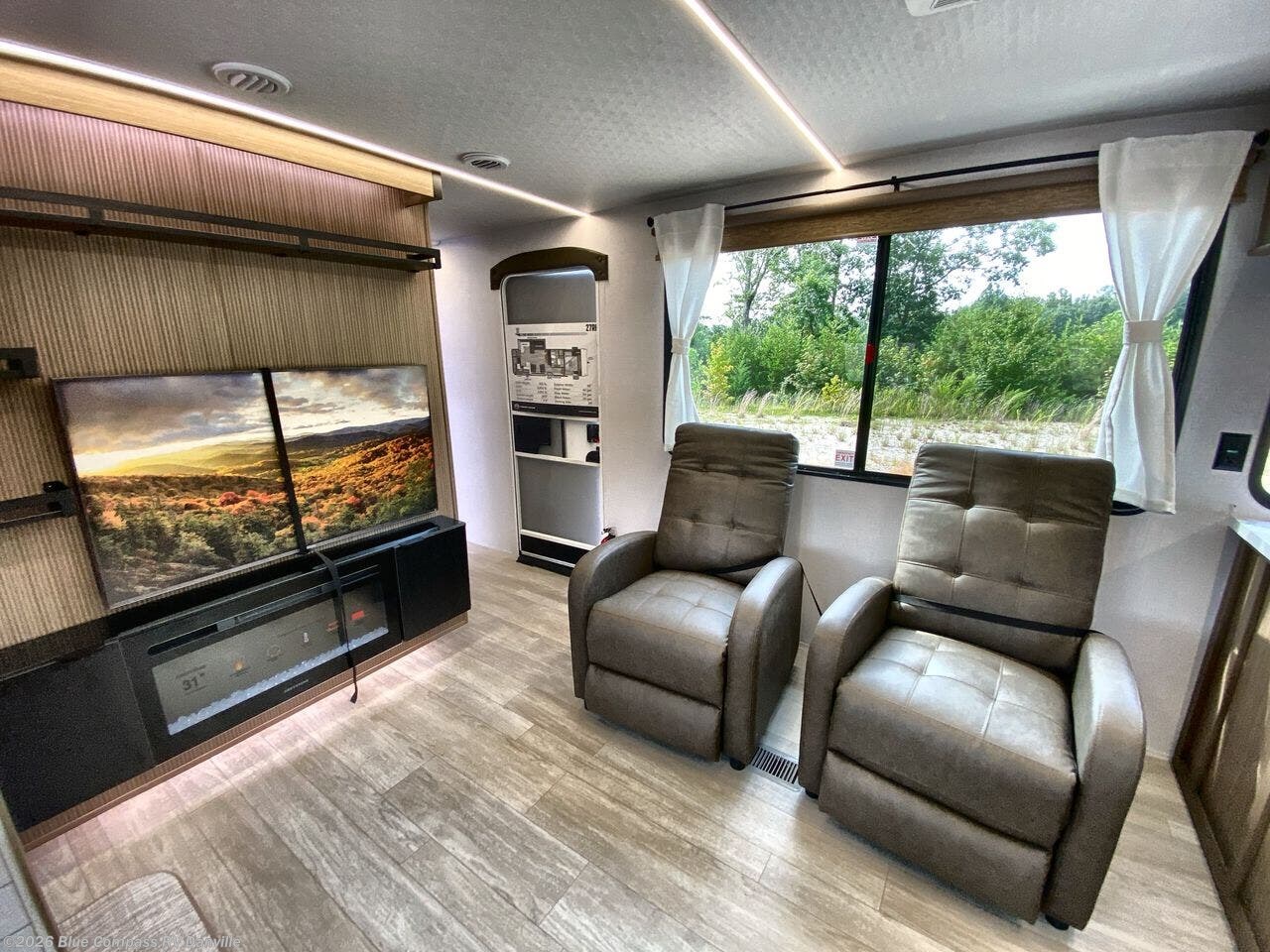 This Wildwood travel trailer is perfect for your family looking for a new adventure. You will enjoy the rear kitchen that includes an oversized refrigerator and cooktop. The Versa-Lounge will provide comfortable seating and sleeping space, and the Versa Flex table gives you a space to dine and work if needed. This unit also includes two lounge chairs so you'll feel right at home! You'll love the full bath in this unit, and the custom king bed with Versa-Tilt in the private bedroom is perfect for a good night's rest.