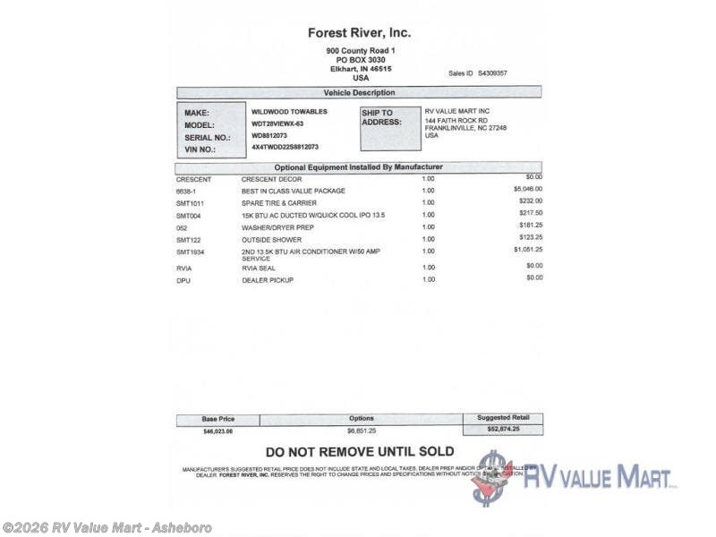 Request More Info on this 2025 Forest River Wildwood 28VIEWX Offered for sale by RV Value Mart - Asheboro