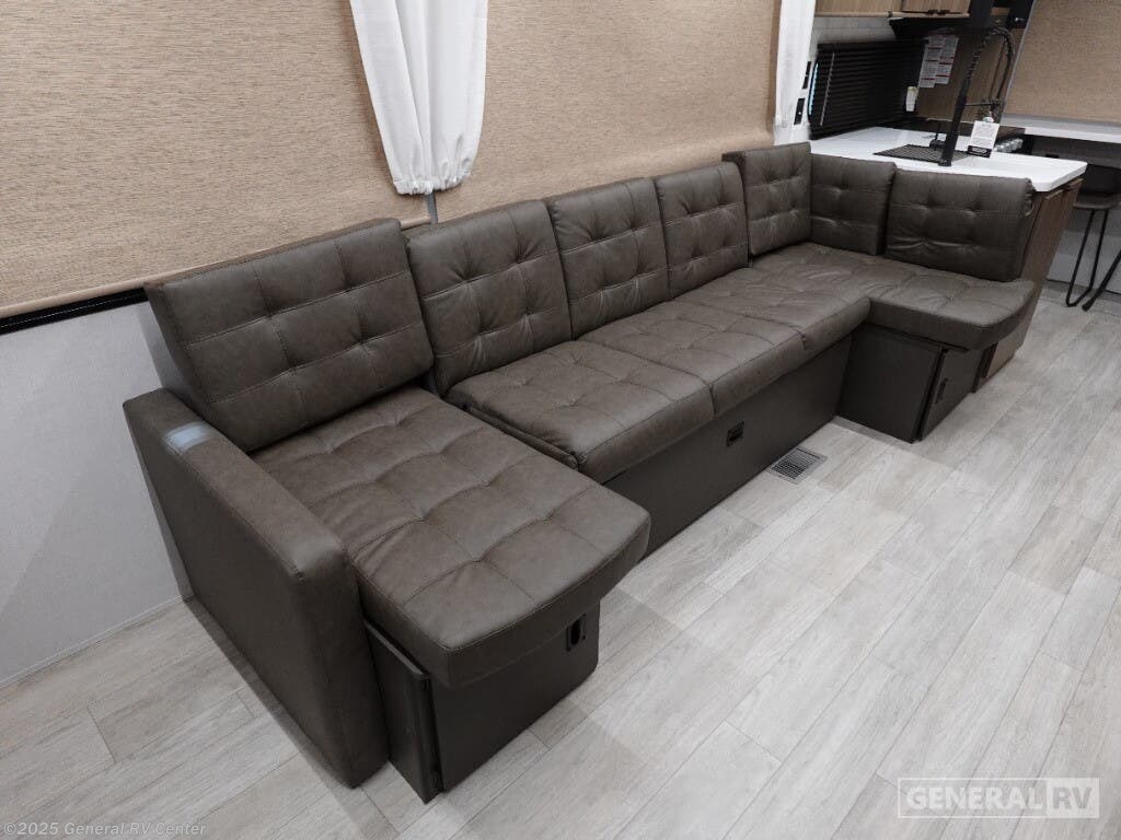 Step into the 2025 Forest River Wildwood 29VIEW, where comfort meets adventure in a beautifully designed space. This RV is perfect for families or groups, offering sleeping accommodations for up to six people, including a luxurious king bed and cozy bunks. The rear kitchen is a culinary delight, equipped with a full-size electric refrigerator and a three-burner cooktop, ensuring you have all the amenities to craft delicious meals on the road. The center living area is inviting with a sectional sofa, perfect for relaxing after a day of exploration. The Wildwood 29VIEW is designed with convenience in mind, featuring a washer/dryer prep and ample storage throughout, including pass-thru storage for all your gear. The exterior camp kitchen and a 20-foot powered retractable awning extend your living space to the great outdoors, making it ideal for those who love alfresco dining and entertaining. With its thoughtful layout and premium features, this RV ensures every journey is as enjoyable as the destination. For more details or to experience it firsthand, visit your nearest General RV dealership.