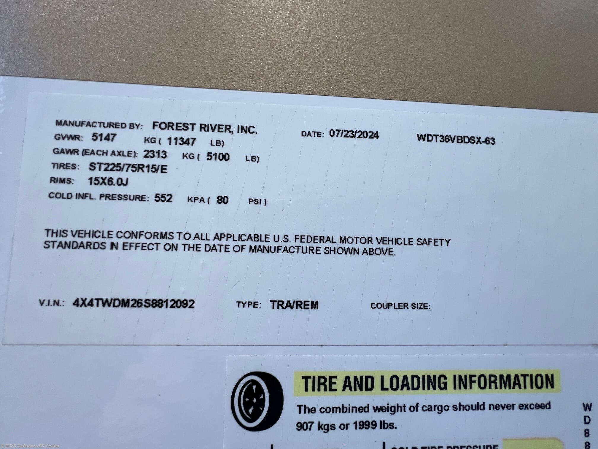 This 2025 Forest River Wildwood 36VBDS is outfitted with all the features you need for happy camping. By owning this 2025 Forest River Wildwood 36VBDS, you’re joining the Forest River family! The sleep capacity allows you to bring up to 8 along on your travels in this rig. With two slides, you’ll have the perfect amount of room to make this rig feel like home. It doesn’t matter whether you are cooking for one or an entire campground, this kitchen has everything you need with the fridge, oven, stove. Traveling couples love this rig thanks to the king size bed. Keep a comfortable temperature inside your rig with the A/C option. The 40 gallon fresh water tank is just right for easy RV traveling. Outside, you’ll find awning, exterior speakers, leveling jacks, power roof vent, skylight and slideout.