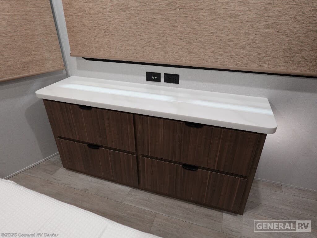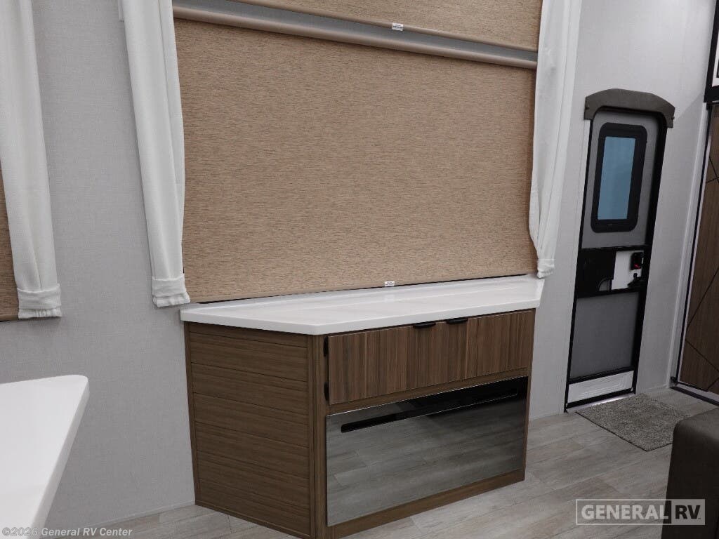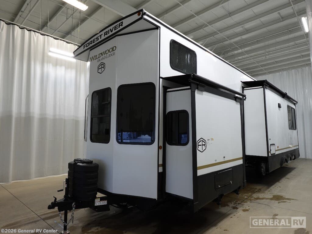 Discover the 2025 Forest River Wildwood Grand Lodge 44VIEW, a marvel of spacious elegance and thoughtful design. This RV offers a luxurious retreat with its expansive 45-foot layout, perfect for families or groups up to eight. The heart of this home-on-wheels is its center kitchen and living area, featuring a full-size electric refrigerator and a cozy sectional sofa facing a charming fireplace. Imagine evenings spent under the stars, thanks to the 26-foot powered retractable awning, extending your living space into the great outdoors. The 44VIEW floorplan is crafted for comfort and convenience, boasting both a king and queen bed, complemented by two bunks and a convertible bed option. The private bedrooms and lofts offer restful sanctuaries, while the washer/dryer prep ensures you're ready for extended adventures. With ample storage, a walk-in shower, and modern amenities, this RV is your perfect companion for memorable journeys. Experience the Wildwood Grand Lodge at your nearest General RV dealership and step into a world of unparalleled comfort and style.