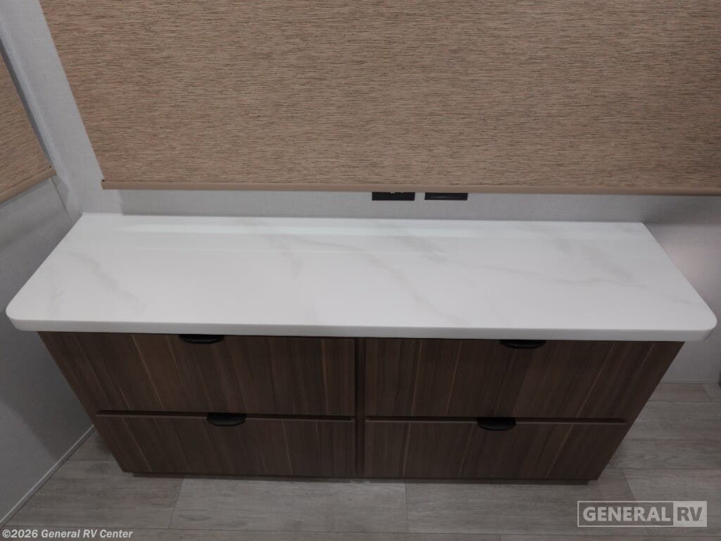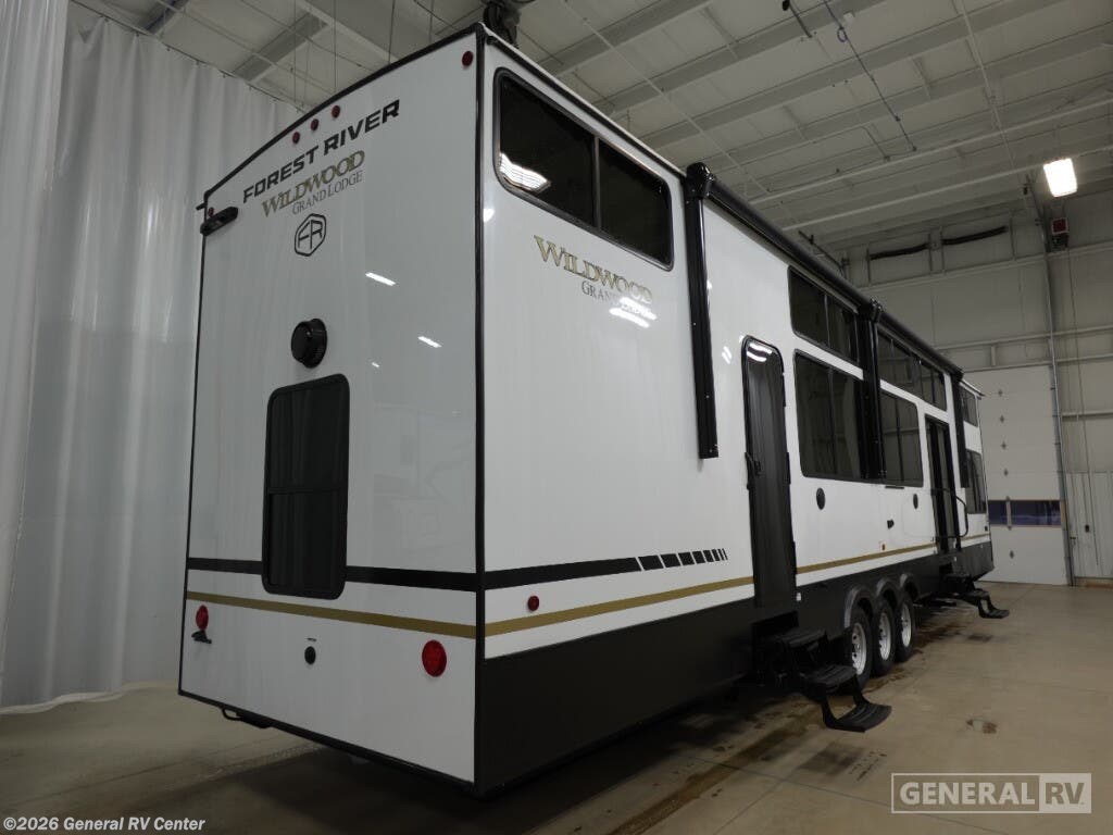 Discover the 2025 Forest River Wildwood Grand Lodge 44VIEW, a marvel of spacious elegance and thoughtful design. This RV offers a luxurious retreat with its expansive 45-foot layout, perfect for families or groups up to eight. The heart of this home-on-wheels is its center kitchen and living area, featuring a full-size electric refrigerator and a cozy sectional sofa facing a charming fireplace. Imagine evenings spent under the stars, thanks to the 26-foot powered retractable awning, extending your living space into the great outdoors. The 44VIEW floorplan is crafted for comfort and convenience, boasting both a king and queen bed, complemented by two bunks and a convertible bed option. The private bedrooms and lofts offer restful sanctuaries, while the washer/dryer prep ensures you're ready for extended adventures. With ample storage, a walk-in shower, and modern amenities, this RV is your perfect companion for memorable journeys. Experience the Wildwood Grand Lodge at your nearest General RV dealership and step into a world of unparalleled comfort and style.