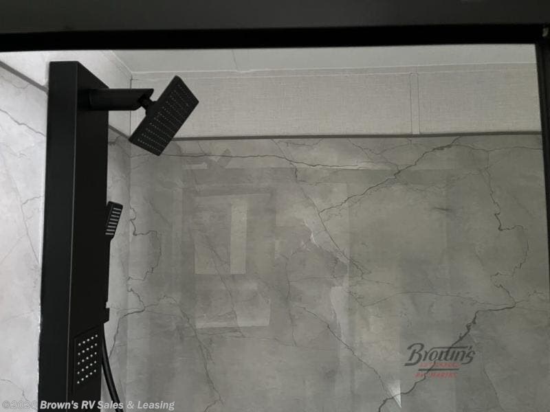 With any Wildwood Grand Lodge destination trailer by Forest River, you can enjoy extended stays wherever you go! There is 4K awning blade lighting outside, along with slide out awning toppers, plus a heated and enclosed Accessibelly for added protection. Inside, you'll love the stylish backsplash update, elegant curtain rods and curtains, TFL black walnut entertainment shelves, and stainless steel kitchen appliances. A Serta mattress in the bedroom(s) will provide comfort to each journey, and there is a tankless water heater for hot water when you need it.