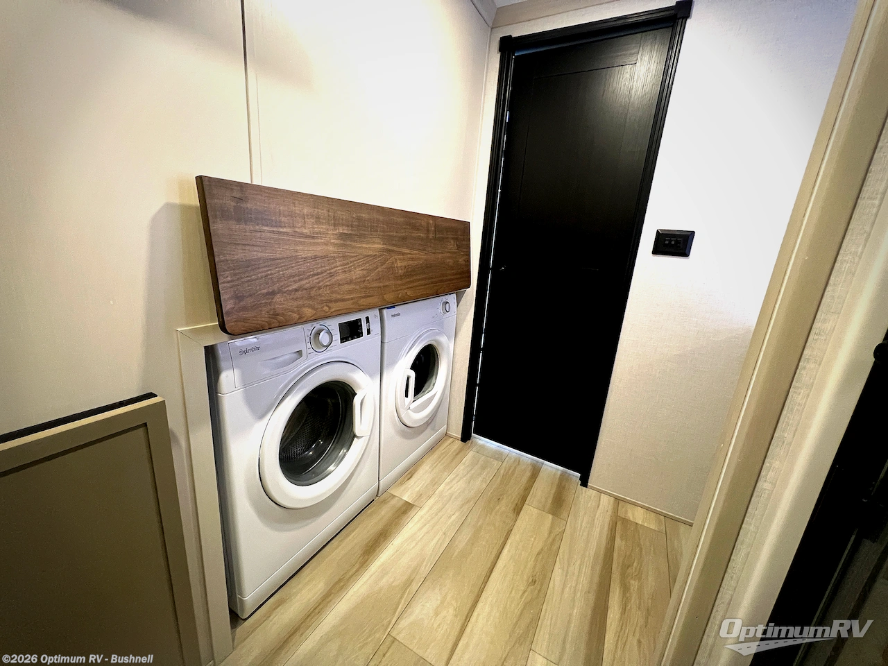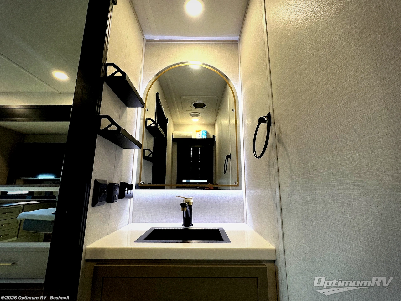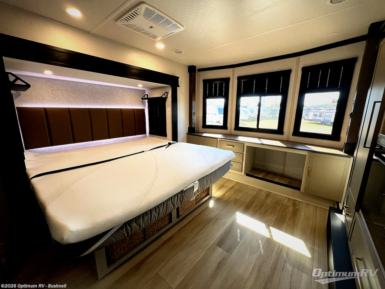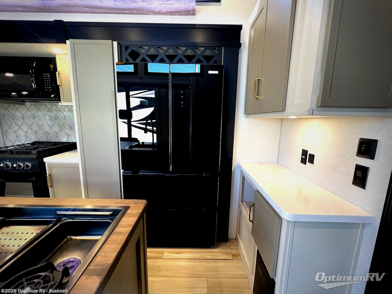 Introducing a new RV of its kind, the ROOST43 is a destination-style fifth wheel you are sure to love! There are two levels, making it feel more like home, and you can sleep six to eight each night. The master bedroom includes a custom king bed slide out, a 32" TV and fireplace, a desk/vanity, plus a half bath for convenience. A custom king-size bed is also found in the front loft, and there are storage cubbies plus a coax/110V outlet here to plug in chargers or a laptop. The second loft in the back includes spiral stairs, two bunk mats, a wardrobe, and cubby cubes here also for your guests' things. Some of the stand-out features you'll find on the first level are the sectional sofa with a coffee table, an entertainment center with a 65" TV, a kitchen island with five chairs, and a fully-equipped kitchen. The 20 cu. ft. 12V refrigerator and pull-out pantry will let you stock up on food, and the kitchen hutch will be perfect for nice dishes. The full bath on this model is one to remember; there is a one-piece fiberglass shower with a teak seat, a flip-up shelf and a washer/dryer, a backlit mirror, and more. And we haven't even touched on the exterior features, such as the pull-out tray, outdoor refrigerators, 20' awning, and more!
