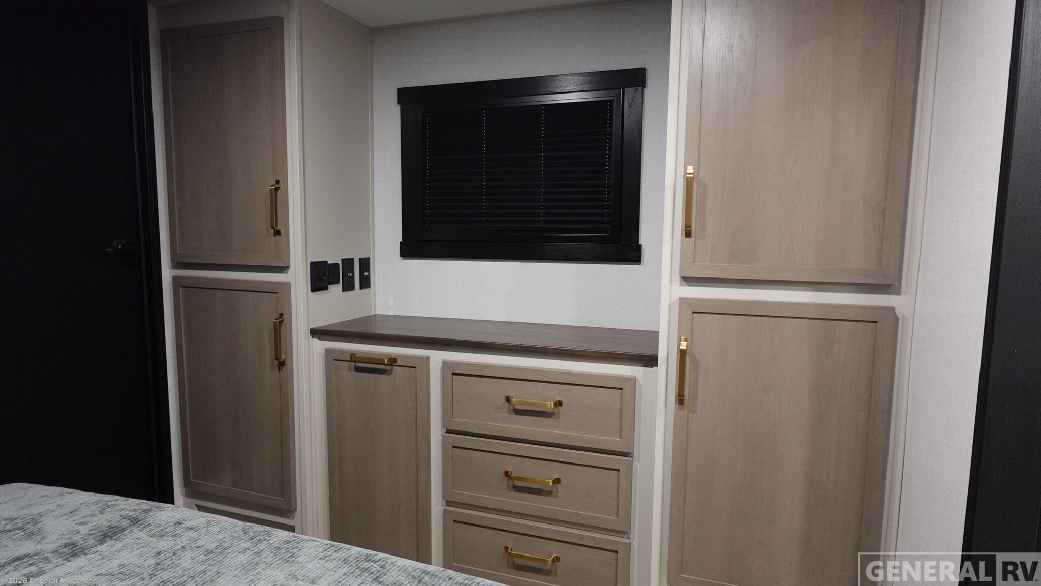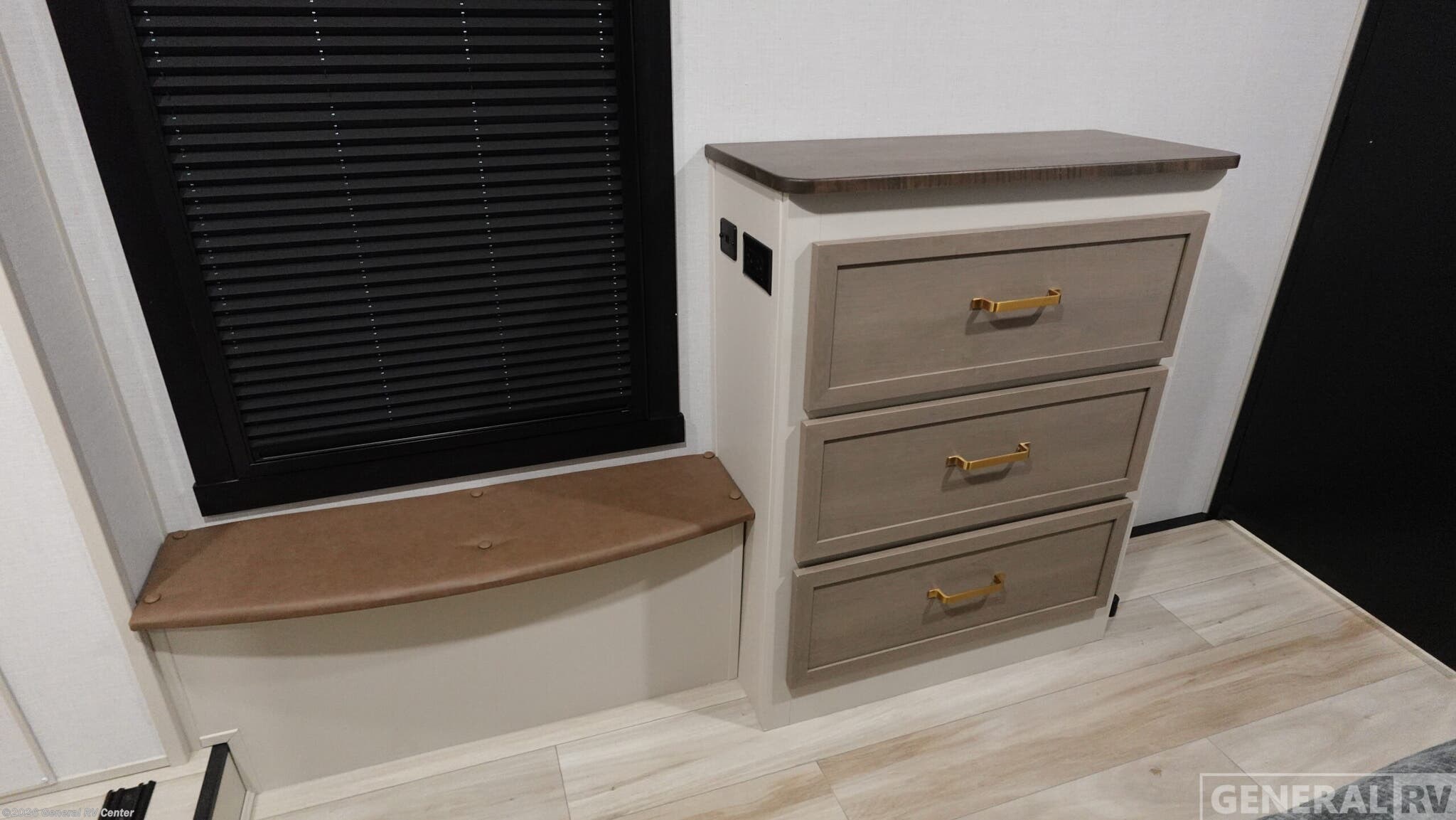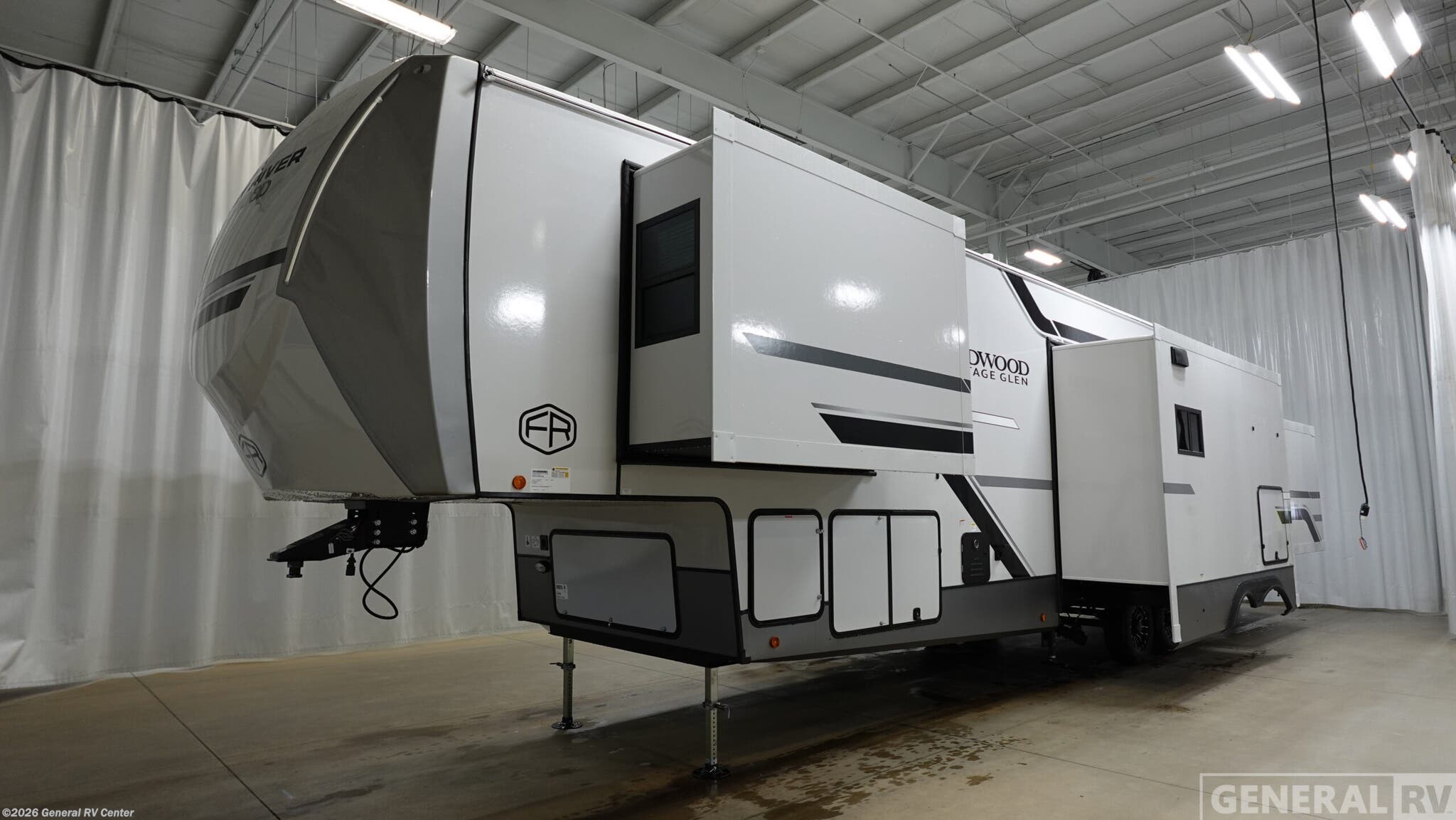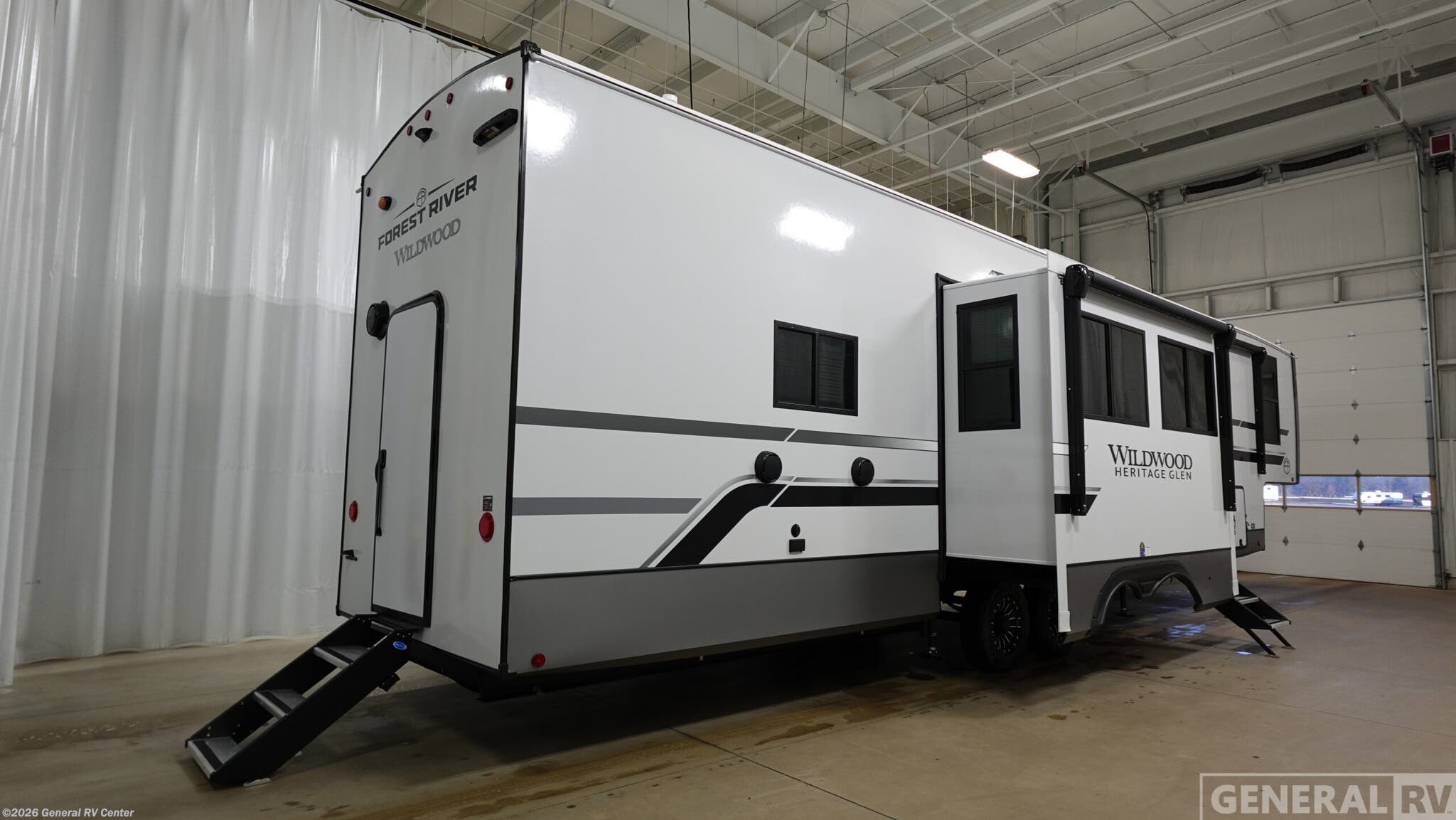 Discover the 2025 Forest River Wildwood Heritage Glen 375FAM, where luxury meets functionality in a stunning 42.75-foot design. This RV is crafted for families who crave adventure without sacrificing comfort. With sleeping accommodations for six, including a king-sized bed and two convertible beds, plus a cozy bunkhouse, every family member will find their perfect spot to relax. The spacious center living area features theater seating and panoramic windows, creating an inviting atmosphere for entertainment or unwinding after a day of exploration. The kitchen is a chef's delight, equipped with a full-size electric refrigerator and a three-burner cooktop. A walk-in pantry provides ample storage for all your culinary essentials. The elegant design continues with a fireplace that adds warmth and ambiance to the living space. The dual-entry bathroom offers convenience, while the washer/dryer prep ensures you're ready for extended stays. With a 13 ft. powered retractable awning, outdoor relaxation is just a button away. Visit your nearest General RV Dealership to experience the Wildwood Heritage Glen 375FAM firsthand.