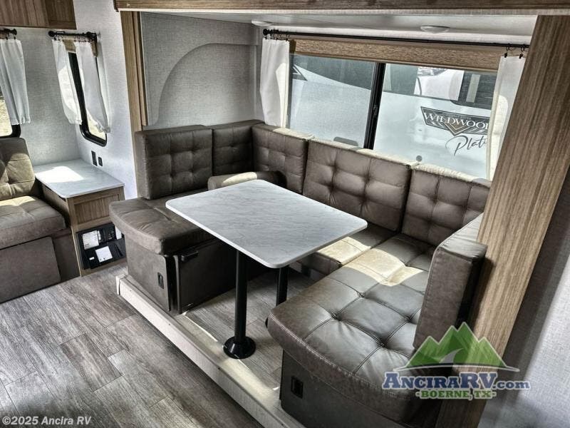 Whether it's a family vacation or a romantic getaway with your significant other, this Wildwood X-Lite travel trailer will make it the very best! The master bedroom has many places to store items with the walk-in closet and bedside closets plus nightstands, and the walk-through bath also provides additional storage with a linen closet and vanity. There is also a custom king bed with Versa-Tilt you are sure to enjoy. The kitchen has modern amenities, like an 11-cubic foot refrigerator, a microwave, and a three-burner cooktop, plus the U-shaped dinette has panoramic windows that surround it to create an inviting space to spend your time. And you will enjoy the protection from the 16' power awning and the sturdy Step Above steps at the entry.