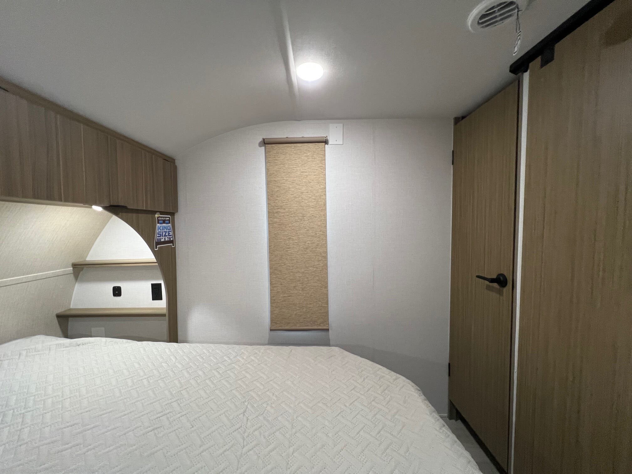 Booth Dinette, Fireplace, King Size Bed, Medicine Cabinet, Roof Vents, Shower, Toilet