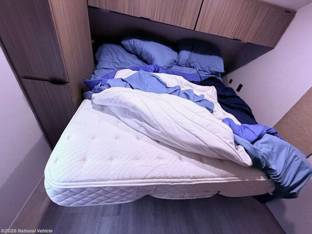 Step inside to a bright and open living area, where the slide-out expands the main space for comfortable seating, dining, and entertaining. The fully equipped kitchen includes solid-surface-style countertops, a three-burner cooktop, oven, microwave, refrigerator, and ample cabinetry, providing everything needed for easy meal preparation on the road. A booth dinette offers a cozy spot for dining or working, while additional storage keeps your essentials organized and accessible.