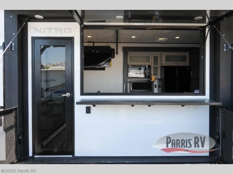 The outdoor enthusiasts has met their match with the XLR Nitro toy haulers by Forest River. The vacuum-bonded aluminum framed sidewalls, gel-coat fiberglass exterior, and singular roof membrane are just a few durable construction materials you will find on these models. There is a weatherproof insulated ramp door, 5,000 lb. cargo tie-downs, a 40 gallon fuel station, and more convenient garage features that will make camping with toys easier than ever. You'll appreciate smooth towing thanks to the MORryde CRE3000 suspension enhancement and 16" Goodyear Endurance tires. A 200 watt roof-mounted solar panel also comes standard, along with electric awning(s) with LED lights, undercarriage lighting, and friction hinge entry door(s). Some of the innovative technology features include a Winegard Air 360 antenna with WiFi prep and 4G LTE, convenient USB charging stations, and a Gear Guardian wireless camera for inside the garage to help keep your gear secure. You will also find diamonds solid surface kitchen countertops, Luna Quartz bathroom countertops, hardwood cabinet doors, stylish window trim package, and many more interior comforts.