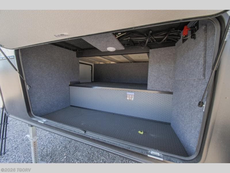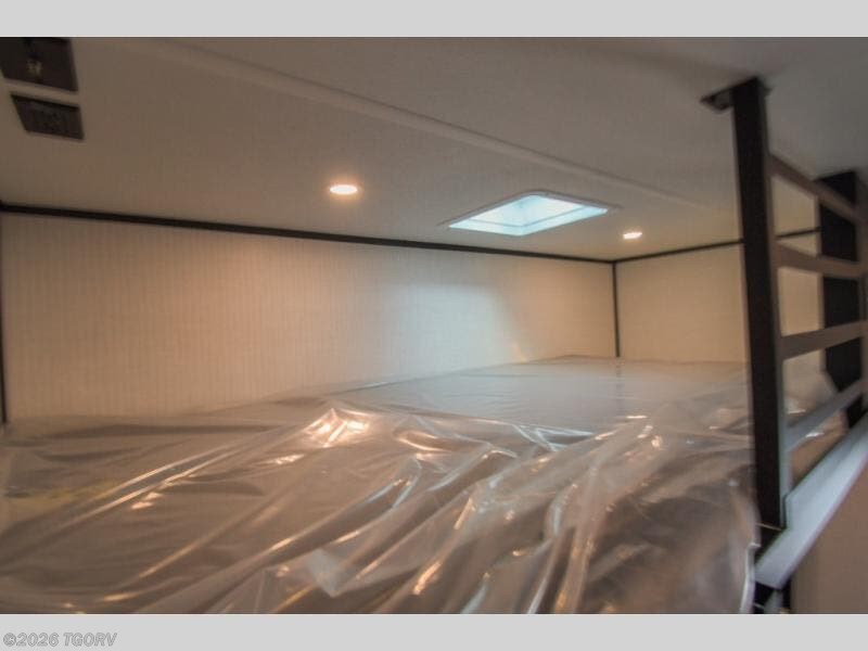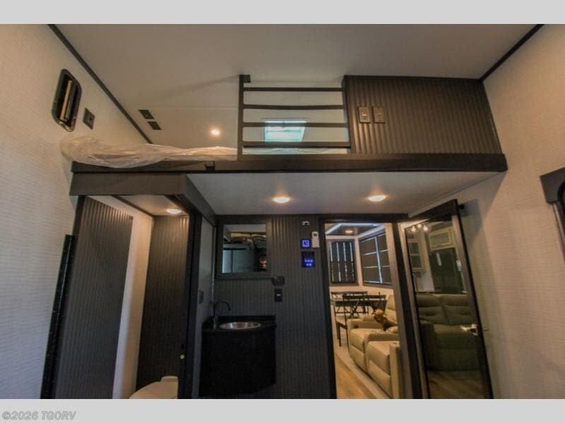 When you're ready to kick up some mud, hitch this toy hauler up and head out! You can set up the patio deck once your toys are removed from the 14' separate garage and relax with a cold drink. You'll find seating space on the Sit N Sleep roll-over sofas with a removable dinette table in between, and the Sleep N Store electric queen bed will provide sleeping space for your guests. There is also a loft and a half bath for even more convenience. Head through the garage glass sliding doors to the living area with an L-shaped sofa and theater seating, or start lunch in the shared middle kitchen with ample counter space. There is even a free-standing table and chairs like you would find at home. The full bath up front lets you clean up after a trail ride and the front private bedroom will have you feeling right at home. A king bed slide out comes standard, along with a large front wardrobe with washer and dryer prep, plus a dresser and TV backer if you want to add your own TV.