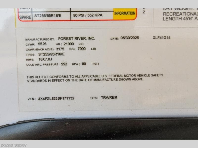 Request More Info on this 2025 Forest River XLR Nitro 41G14 Offered for sale by TGORV