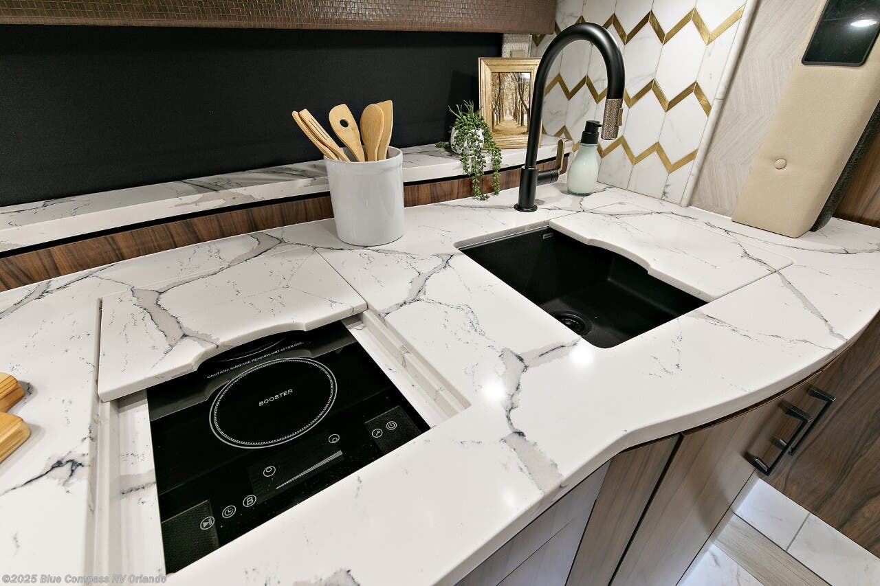Interior upgrades include Quartz countertops, LG Signature Appliances, and Beautifully curved entry. Knoedler Air Ride Driver's Seat with swivel control, heat, cooling and massage.