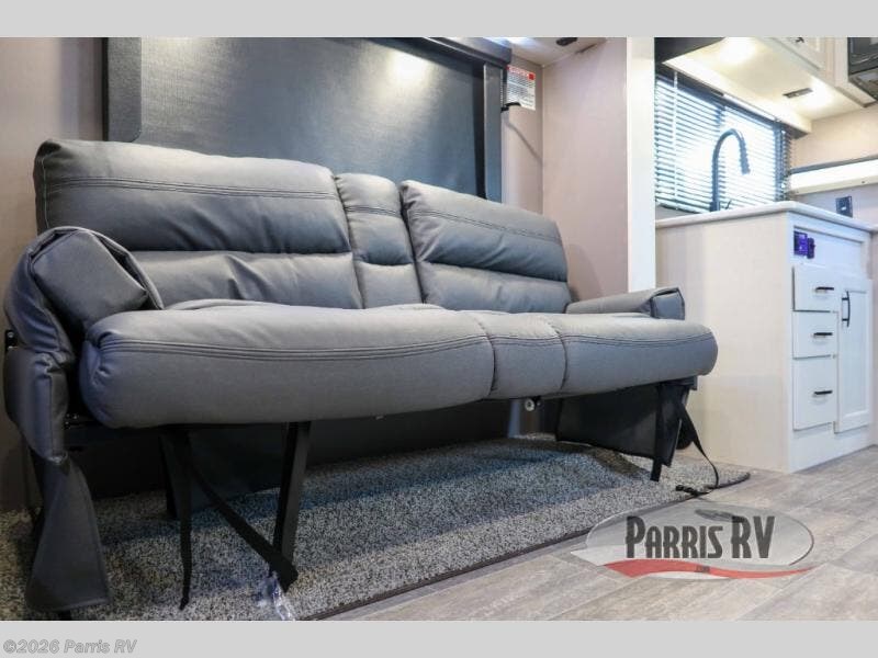 This unit is just like model 2815, except features a higher profile with plenty of room. You can store your ATVs in the 15' 11" garage on this Vortex toy hauler and use the 7' laminated ramp door with beaver tail to get them out. For other gear, there are slam-door storage compartments, and you'll also be able to put fresh products in the 6-cubic foot double-door refrigerator. When you get hungry, use the three-burner range to make a fresh batch of French toast, and when you get tired, use the RV queen bed, power queen bunk, and sofa bed to get some rest. You can also add space to the interior by adding the two optional slides.