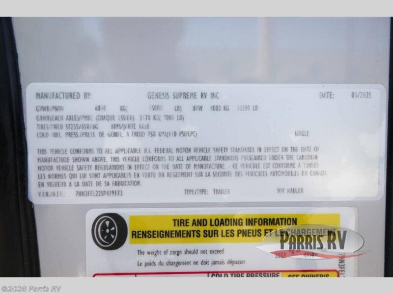 Request More Info on this 2025 Genesis Supreme Vortex 2815VT Offered for sale by Parris RV