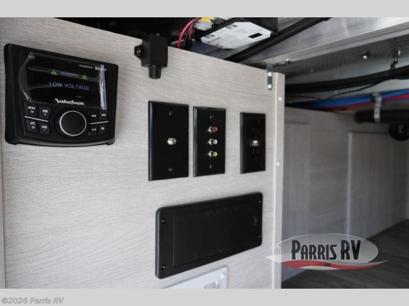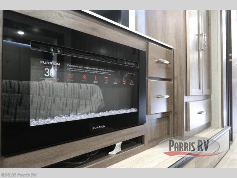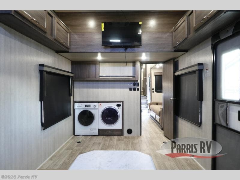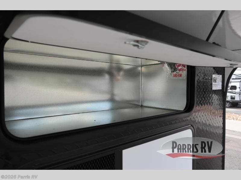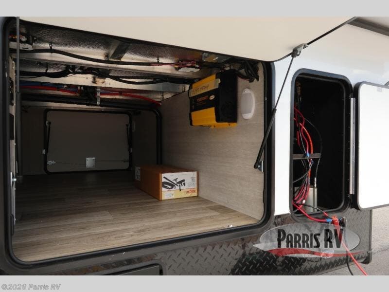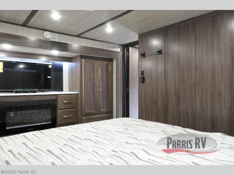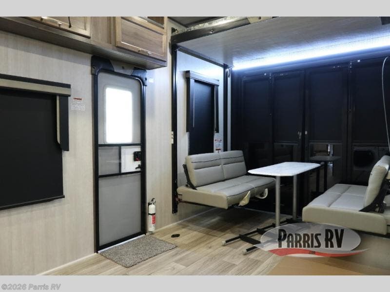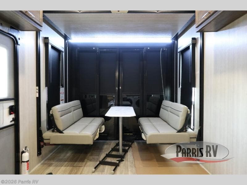 If you enjoy riding the trails and camping with more friends and family, this toy hauler is for you! The 16' 0" cargo length in the separate garage will provide plenty of space for your toys and your guests. They can sleep on the opposing dinette or on the power queen bed and loft. The combined kitchen and living area includes a sofa slide out, a second sofa, plus a U-shaped kitchen counter. There is also a fireplace and 50" TV within the entertainment center so you can enjoy movie nights. A full bath with a shower skylight and power vent will allow you to clean up each day, and the front private bedroom is sure to make you feel at home. There is an RV king bed, dual opposing slides with wardrobes and vanities to keep all your belongings organized plus more storage space!