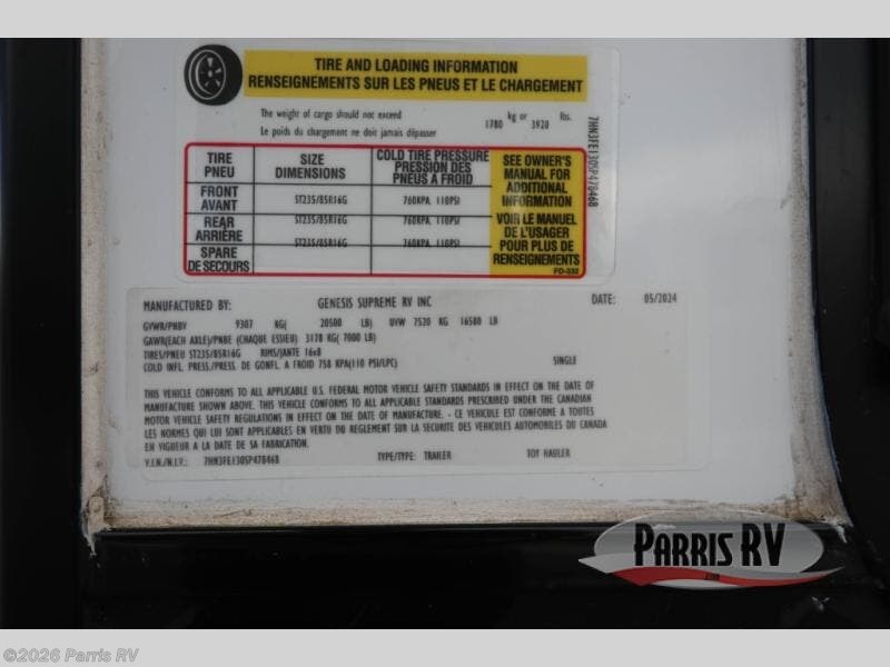 Request More Info on this 2025 Genesis Supreme Vortex 4016CTG Offered for sale by Parris RV