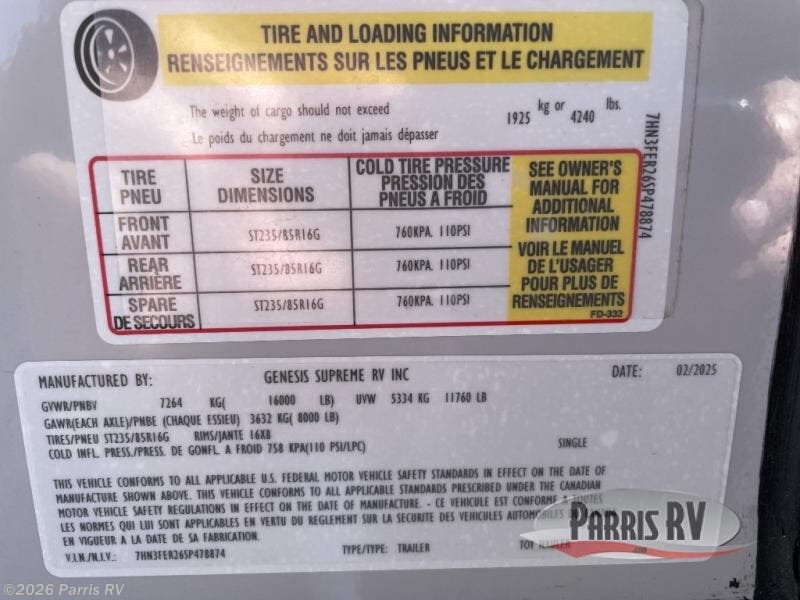 Request More Info on this 2025 Genesis Supreme Vortex V32CRSB Offered for sale by Parris RV