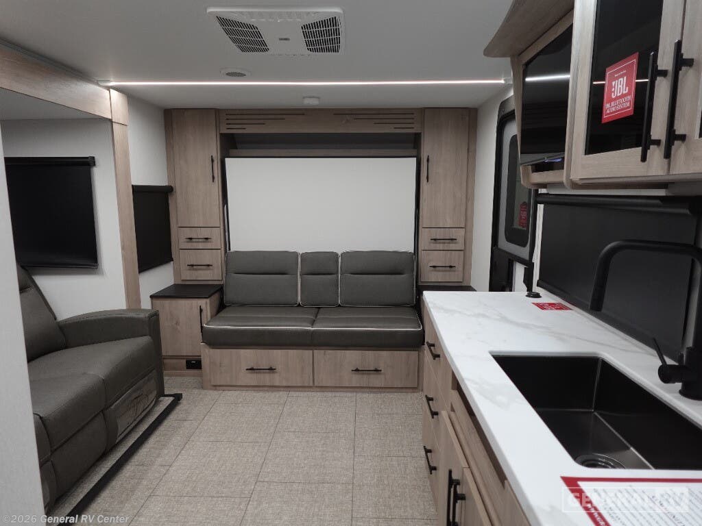 Experience the perfect blend of comfort and convenience with the 2025 Grand Design Imagine XLS 17MKE. This compact yet spacious travel trailer is designed for those who seek adventure without compromising on luxury. With a length of just under 22 feet, it offers a remarkable layout featuring a rear kitchen, a center living area, and a rear bath, making it an ideal choice for couples or small families. The queen-sized Murphy bed cleverly transforms the living space, allowing for a seamless transition from day to night. The Imagine XLS 17MKE is equipped with a mid-size refrigerator powered by electric or propane, and a three-burner cooktop, ensuring your culinary needs are met wherever you roam. Relax under the expansive 14-foot powered retractable awning, perfect for enjoying the great outdoors in comfort. The theater dinette, with an optional U-shaped configuration, provides a cozy spot for meals or movie nights. With ample storage, including unobstructed pass-thru storage and convenient interior drawers, you can bring along all your essentials for the journey. Visit your nearest General RV dealership to explore this impressive model and start your next adventure.