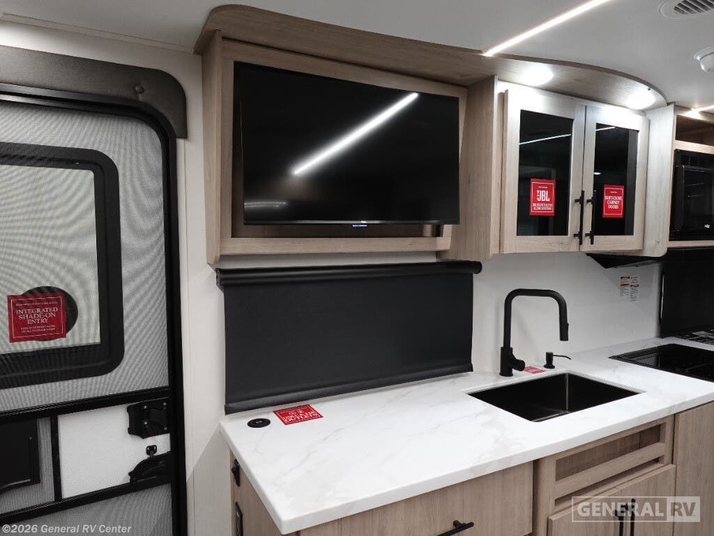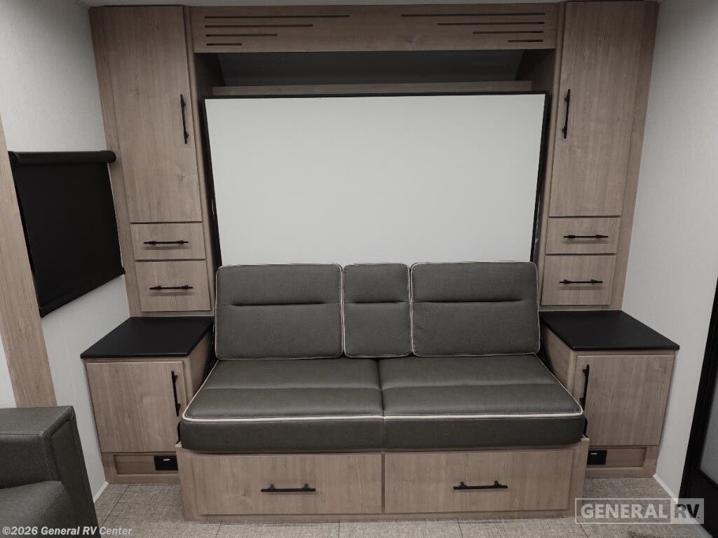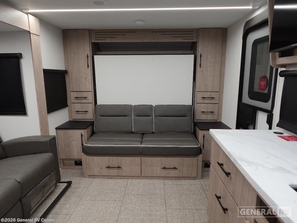 Experience the perfect blend of comfort and convenience with the 2025 Grand Design Imagine XLS 17MKE. This compact yet spacious travel trailer is designed for those who seek adventure without compromising on luxury. With a length of just under 22 feet, it offers a remarkable layout featuring a rear kitchen, a center living area, and a rear bath, making it an ideal choice for couples or small families. The queen-sized Murphy bed cleverly transforms the living space, allowing for a seamless transition from day to night. The Imagine XLS 17MKE is equipped with a mid-size refrigerator powered by electric or propane, and a three-burner cooktop, ensuring your culinary needs are met wherever you roam. Relax under the expansive 14-foot powered retractable awning, perfect for enjoying the great outdoors in comfort. The theater dinette, with an optional U-shaped configuration, provides a cozy spot for meals or movie nights. With ample storage, including unobstructed pass-thru storage and convenient interior drawers, you can bring along all your essentials for the journey. Visit your nearest General RV dealership to explore this impressive model and start your next adventure.
