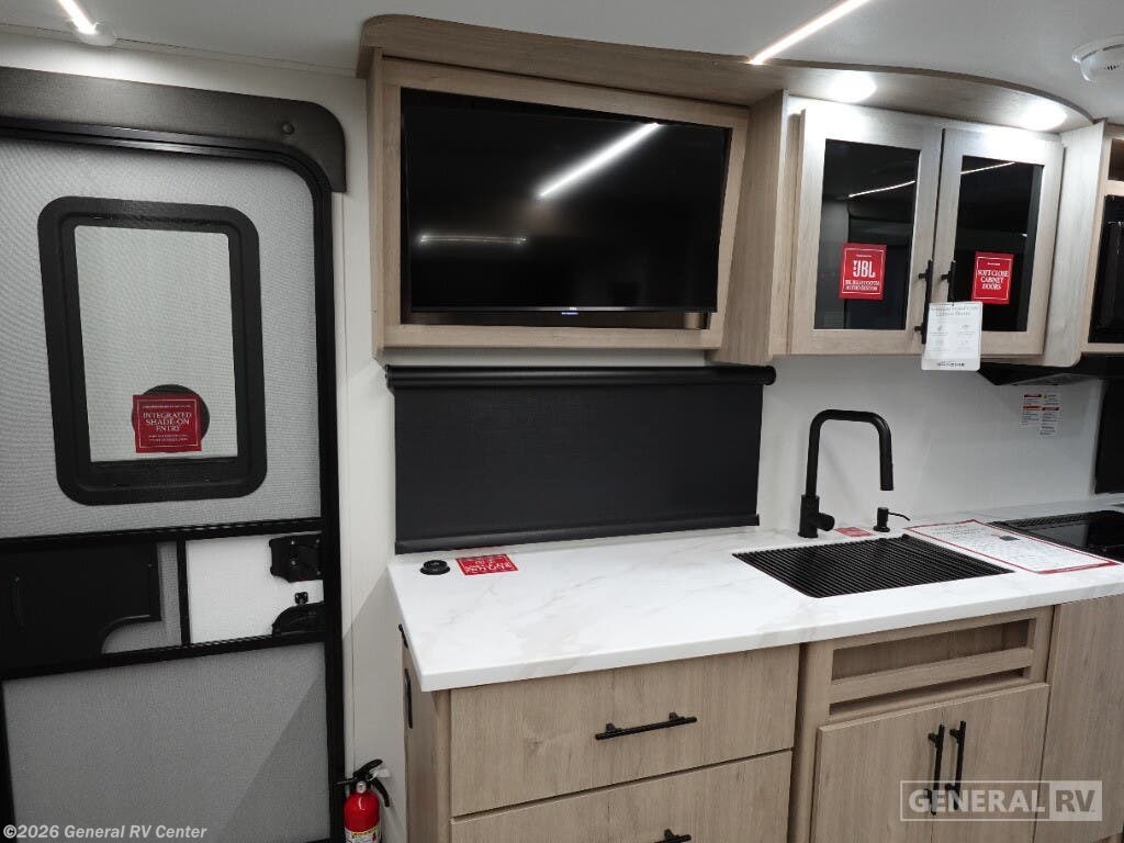 Experience the perfect blend of comfort and convenience with the 2025 Grand Design Imagine XLS 17MKE. This compact yet spacious travel trailer is designed for those who seek adventure without compromising on luxury. With a length of just under 22 feet, it offers a remarkable layout featuring a rear kitchen, a center living area, and a rear bath, making it an ideal choice for couples or small families. The queen-sized Murphy bed cleverly transforms the living space, allowing for a seamless transition from day to night. The Imagine XLS 17MKE is equipped with a mid-size refrigerator powered by electric or propane, and a three-burner cooktop, ensuring your culinary needs are met wherever you roam. Relax under the expansive 14-foot powered retractable awning, perfect for enjoying the great outdoors in comfort. The theater dinette, with an optional U-shaped configuration, provides a cozy spot for meals or movie nights. With ample storage, including unobstructed pass-thru storage and convenient interior drawers, you can bring along all your essentials for the journey. Visit your nearest General RV dealership to explore this impressive model and start your next adventure.