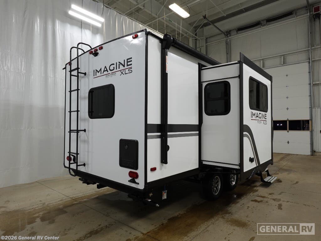 ## Grand Design Imagine XLS travel trailer 22RBE highlights - Private Bedroom - Rear Full Bath - Theater Dinette - Unobstructed Pass-Through This Imagine XLS travel trailer was constructed just for you and your significant other! It has all of the essentials a couple could need, like a full rear bathroom with a residential walk-in shower, a theater dinette with aremovable table where you can eat your meals, a full kitchen with a microwave and three-burner range with an oven, and a private bedroom with a walk-around queen-size bed so that both of you have your own side. There are a couple of extras that will make your time away even more special, like the LED HDTV, flip-up countertop extension, and exterior spray port! Let your imagination run wild with the possibilities that the Grand Design Imagine XLS travel trailer can provide! The Imagine XLS has been built with oversized tank capacities, an extra-large 2" fresh water drain valve, a ducted A/C system, a power tongue jack, and a heated and enclosed underbelly with suspended tanks. There is a designated heat duct to the subfloor and a residential ductless heating system throughout.For outdoor adventures, the electric awning with LED lights will enable you to stay protected, and the Tuff-Ply pass-thru flooring will withstand your many adventures. You will also love the XLS Solar Package that comes with a 180W roof mounted solar panel, a 40 Amp charge controller, a 12V 10 cu. ft. refrigerator, and roof mounted quick connect plugs!