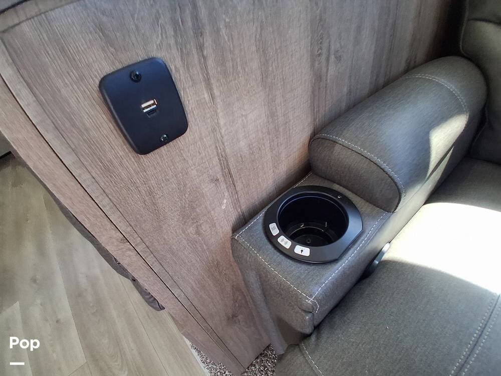 The main living space welcomes you with an open layout designed for comfort and relaxation. Plush theater seating perfectly positioned for entertainment, an entertainment center with a large LED TV and fireplace, a premium sound system, multiple USB/charging ports, stylish cabinetry, and ample overhead storage