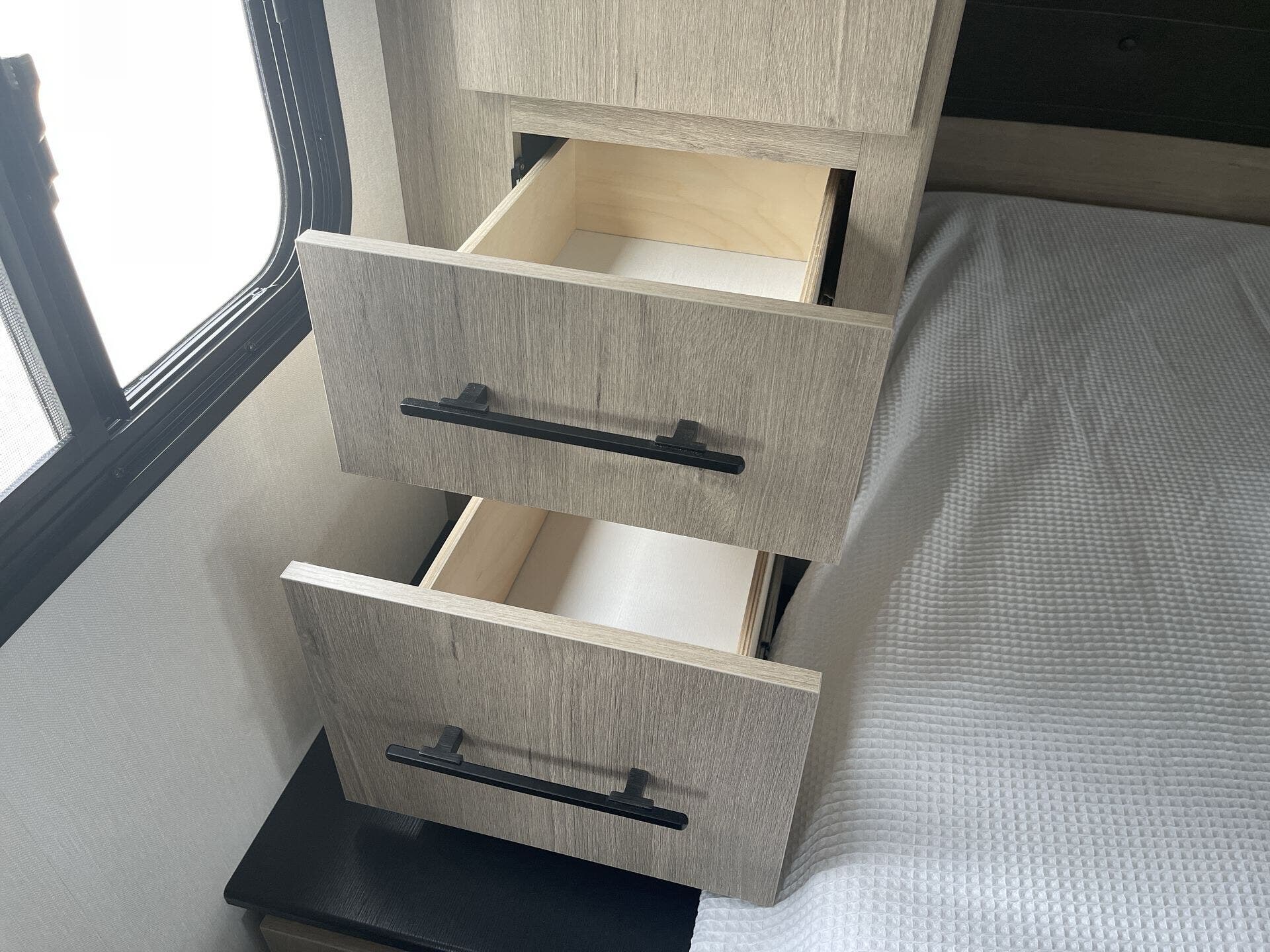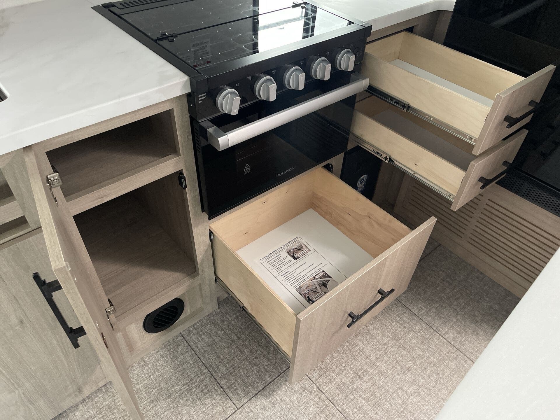 Safety is a priority with features such as a CO detector, fire extinguisher, and smoke detector, ensuring peace of mind during your travels.