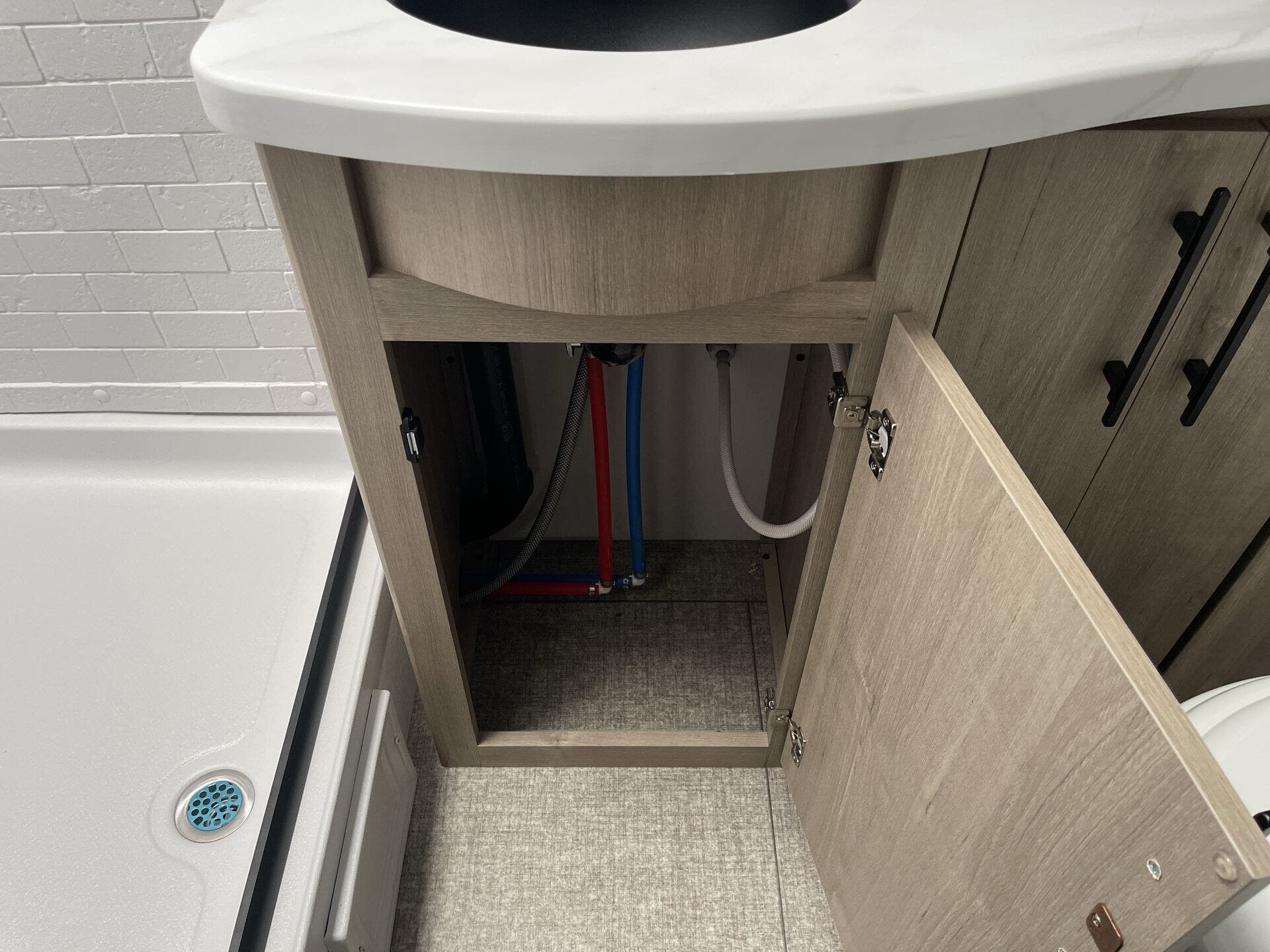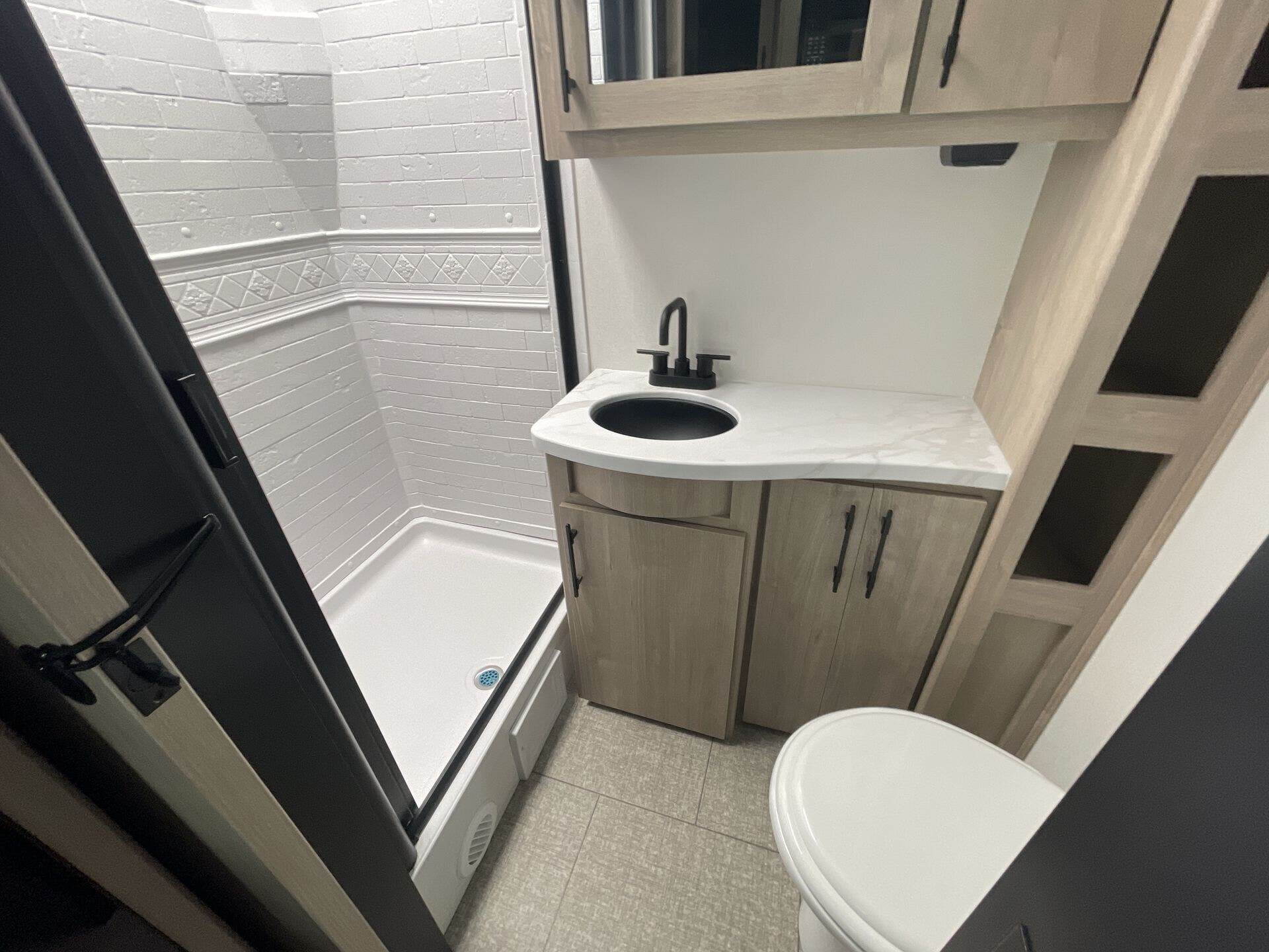 Kitchen Sink, Medicine Cabinet, Overhead Cabinetry, Shower, Theater Seating, Toilet, Wardrobe(s)