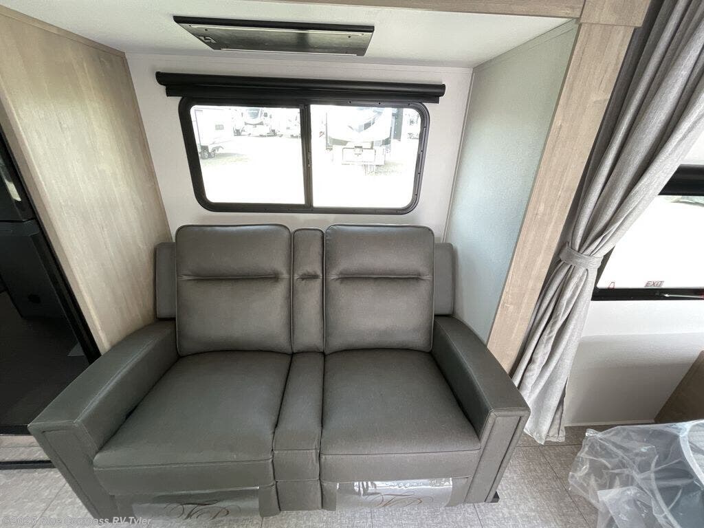 This Imagine XLS travel trailer has theater seating and a booth dinette that you can use any time you need a little break from the outdoors. If you want to come in and grab a coffee, put together a puzzle, or work on your itinerary for the week, just put up your feet and relax. You could even switch on the LED HDTV if you want a little entertainment. The front queen-size bed has a privacy curtain that you can draw to create a semi-private bedroom, and in the back of the trailer you will find the rest of your amenities, like the kitchen and the bathroom. The large slide makes it easy to enjoy spending your time indoors, but if you do want to get back outside, you can sit underneath the 18' electric awning for some shade.