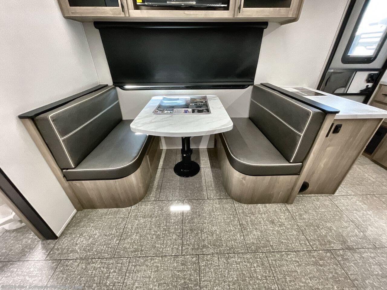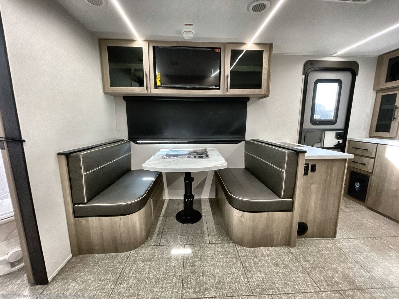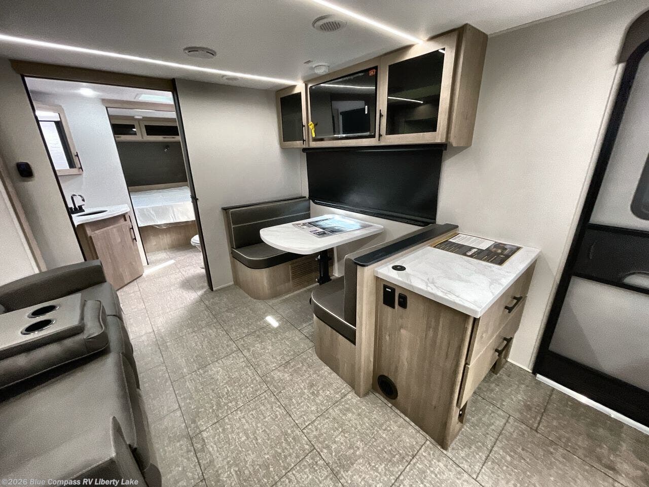 Treat yourself to a weekend of fun in this Imagine XLS travel trailer! Whether it's just you and your spouse, or you've chosen to bring along a group of friends, this trailer will meet the need. The front bedroom can sleep two people on the walk-around queen-size bed. The bedroom is quite functional because it not only contains the second exterior entry door, but it also has a private entrance into the walk-through bathroom since it is located on the other side of the bathroom. The booth dinette is functional too because it can transform from a dining location into a sleeping location, and the theater seating is directly across from the LED TV for easy viewing.