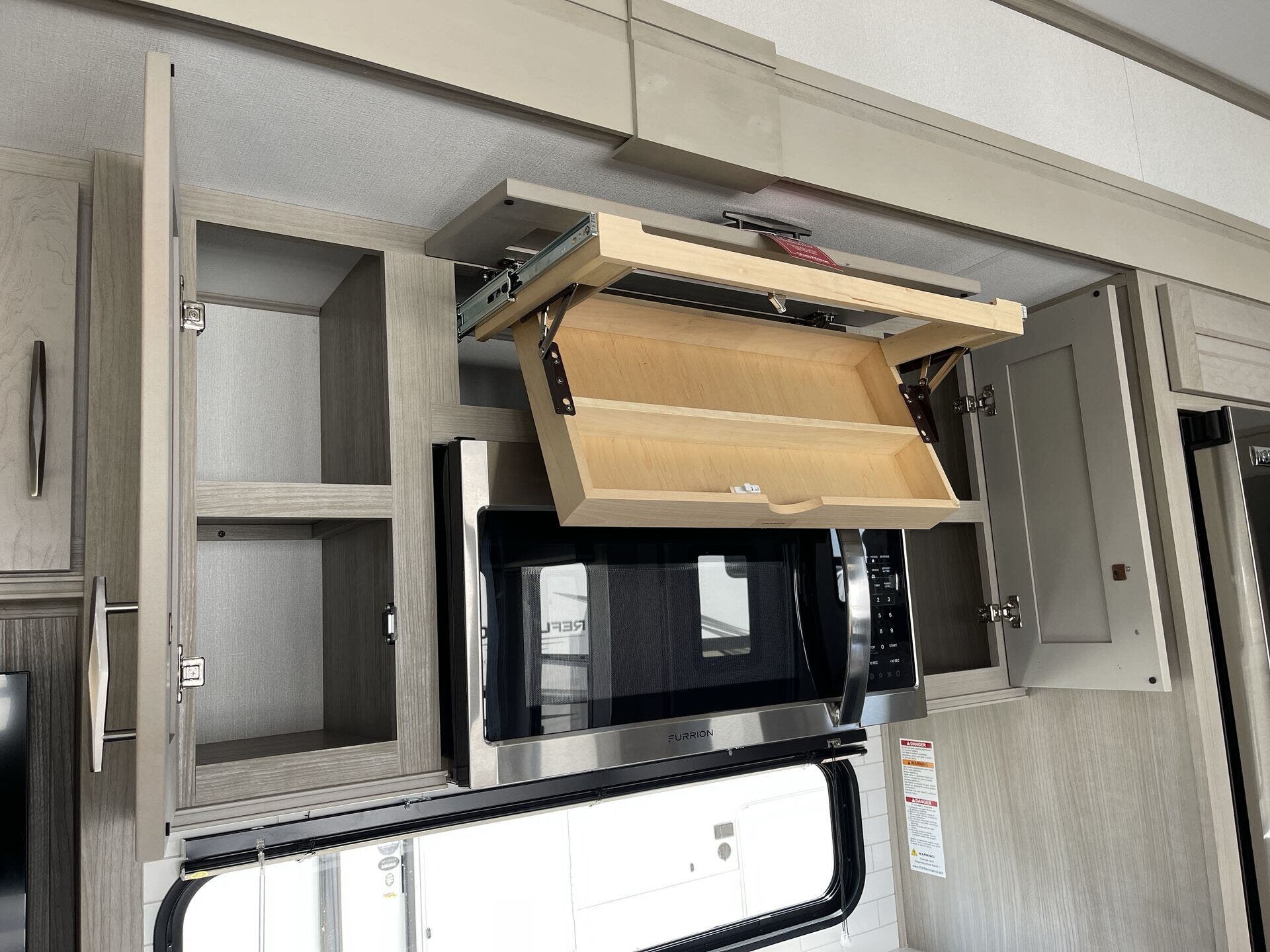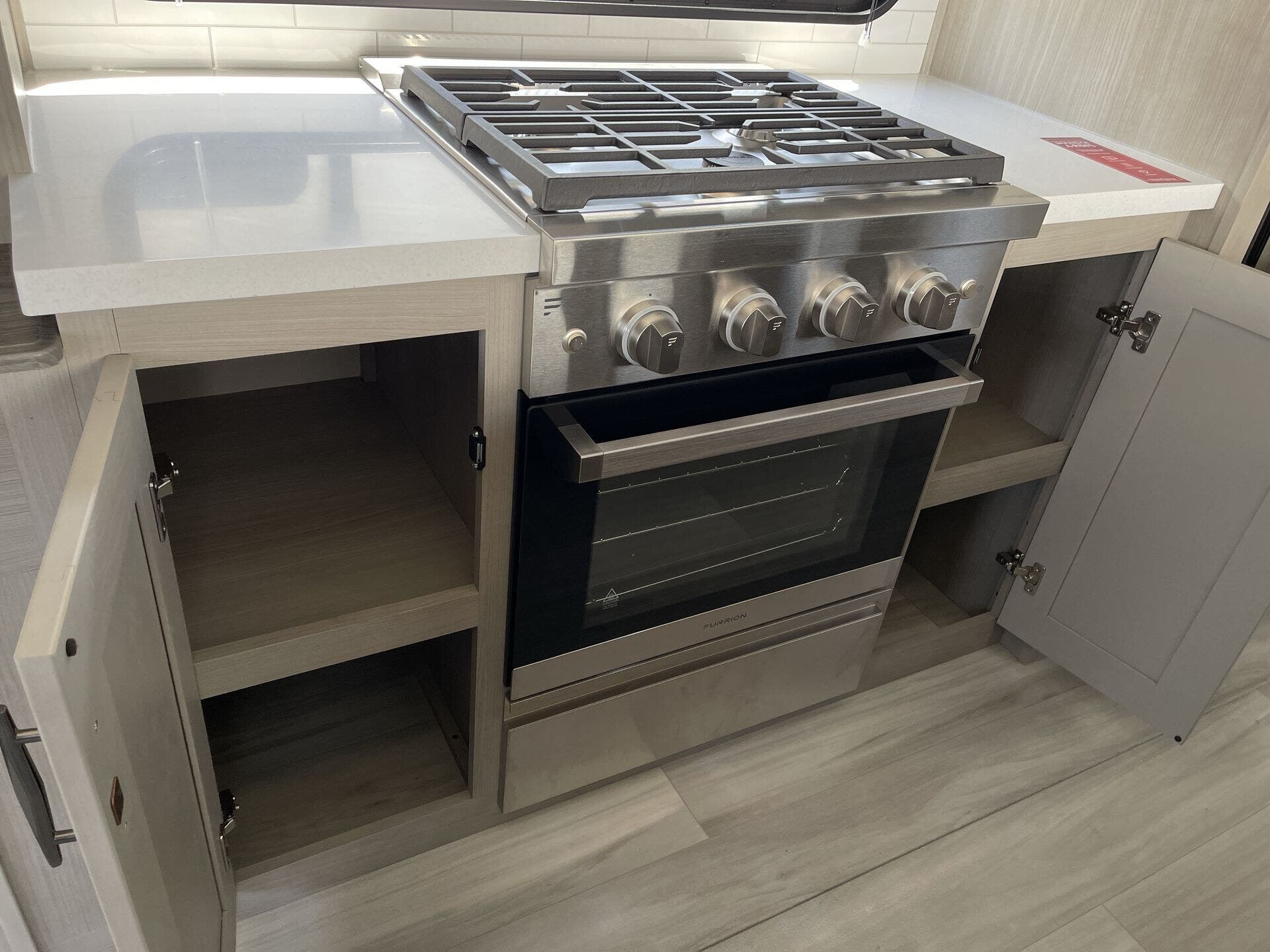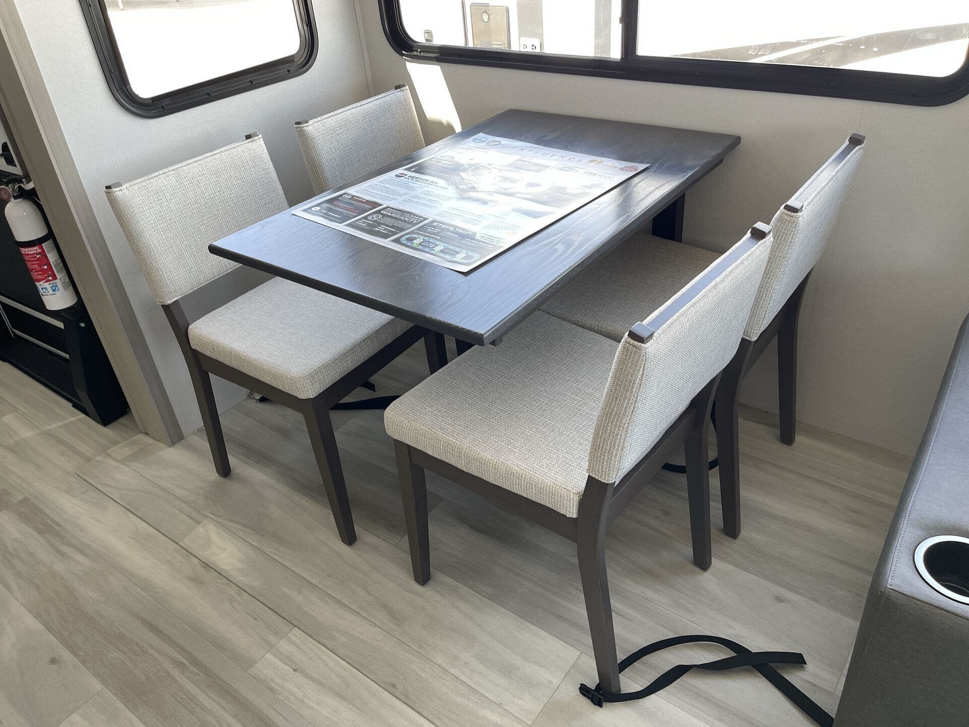 The Influence is designed to accommodate up to 6 people, making it ideal for families or friends on an adventure. The interior is equipped with a queen bed, a cozy rock recliner, and a free-standing dinette with chairs, ensuring everyone has a comfortable spot to relax after a day of exploration. Enjoy the convenience of a well-appointed kitchen featuring a microwave, oven, refrigerator, and stove top burner for all your culinary needs.