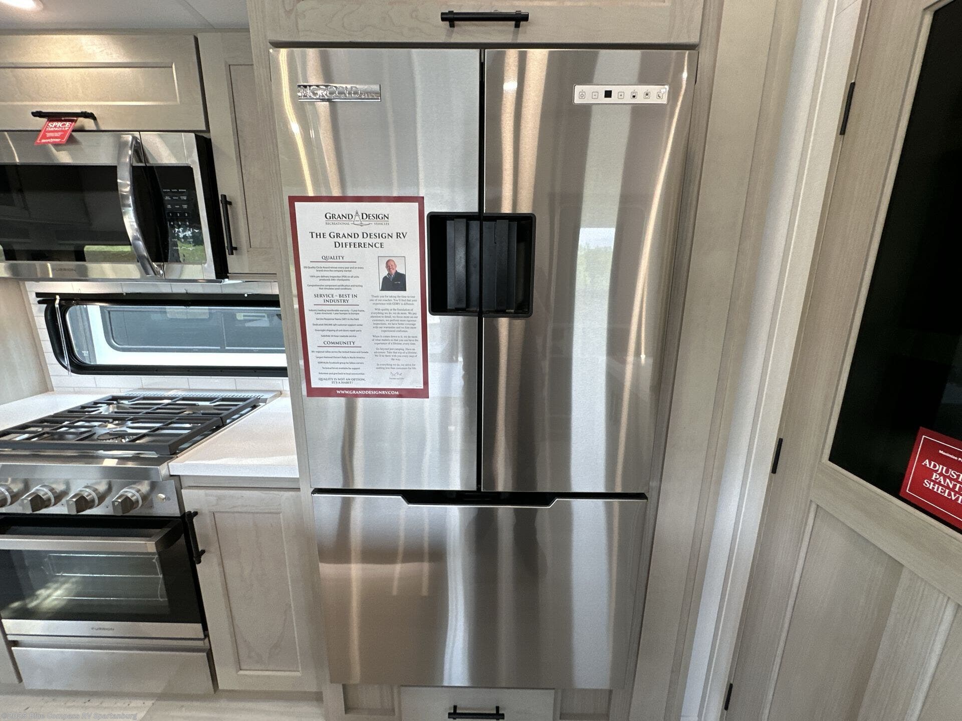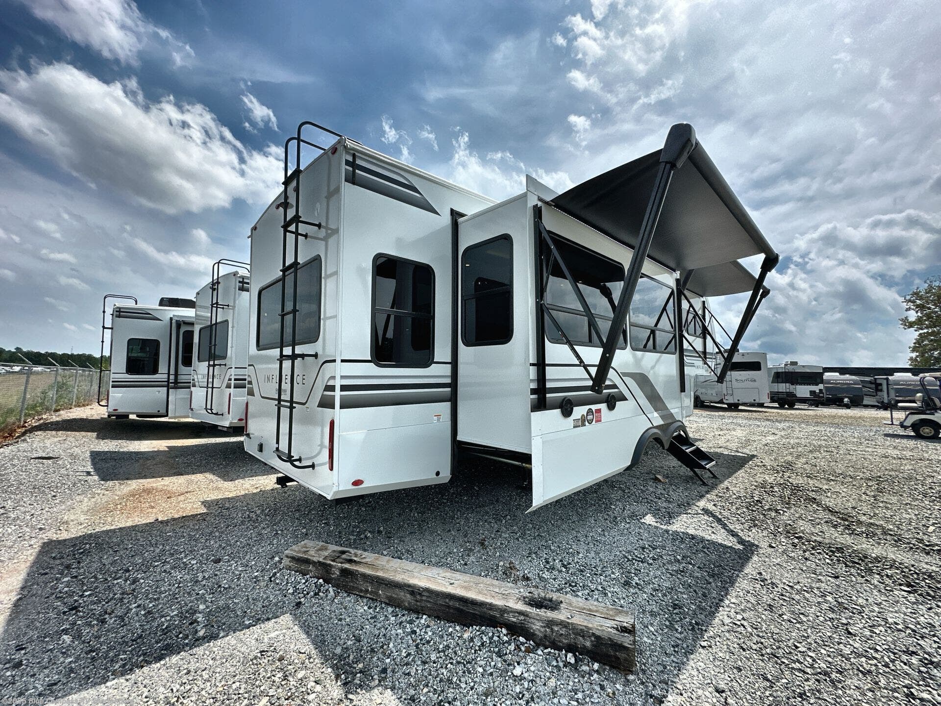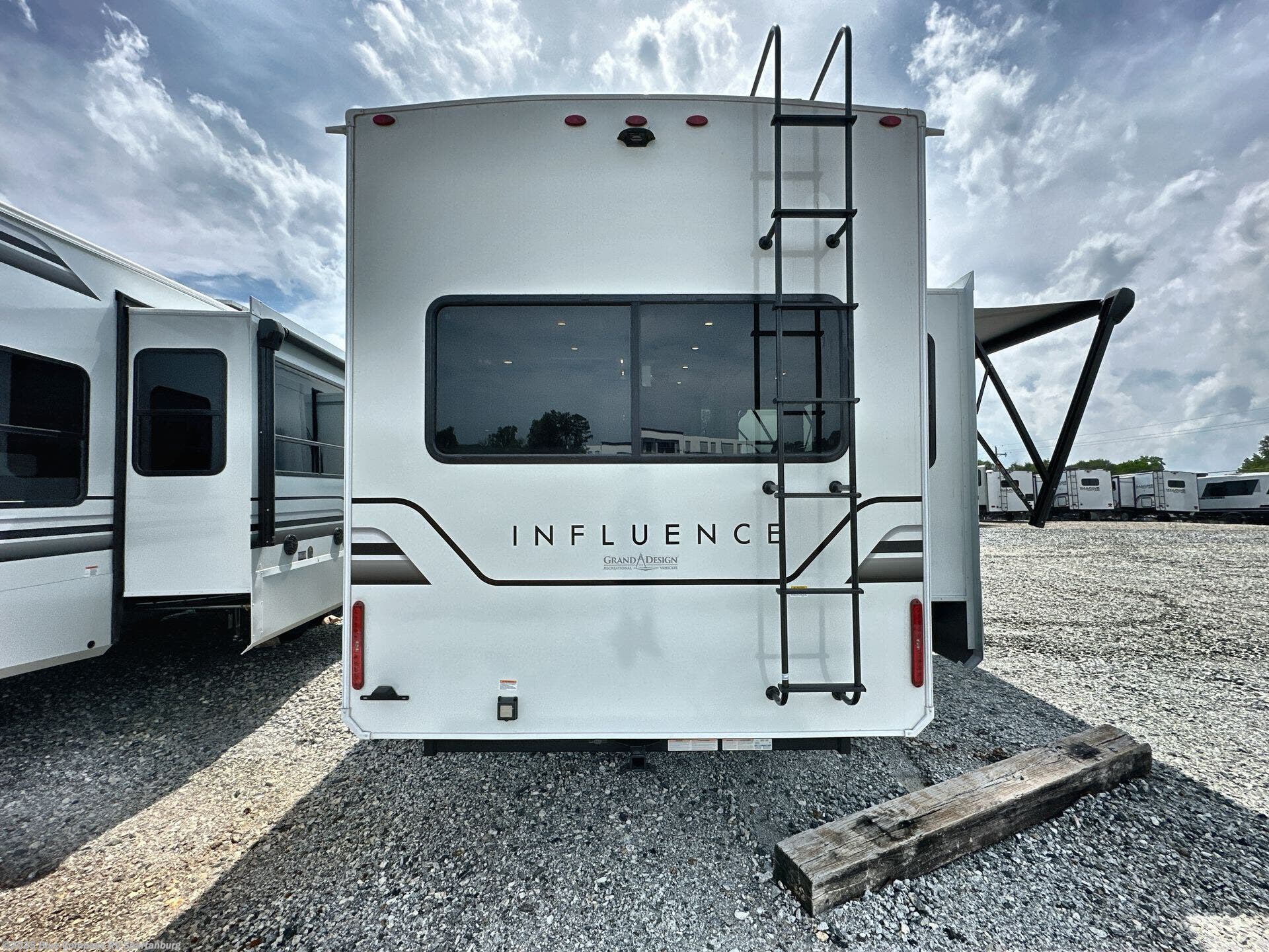 Any Grand Design Influence fifth wheel features five-sided aluminum cage construction with a walk-on roof and a fully enclosed underbelly with heated tanks and storage for all weather camping. For peace of mind, the MORryde CRE3000 Suspension system will provide safe and smooth towing, and the 101" widebody construction offers all the room you need and that is before multiple slides are fully engaged. You will appreciate the Keyed-Alike locks, slam-latch baggage doors with magnetic door catches, exterior security light, and SolidStep entry steps. On the inside, Congoleum flooring, premium roller shades for privacy, a hallway handrail for safety, and nightstands with USB ports to keep all of your electronics fully charged. You will also love the on demand tankless water heater when showering, plus the added heat and ambiance from an electric fireplace, and so much more!