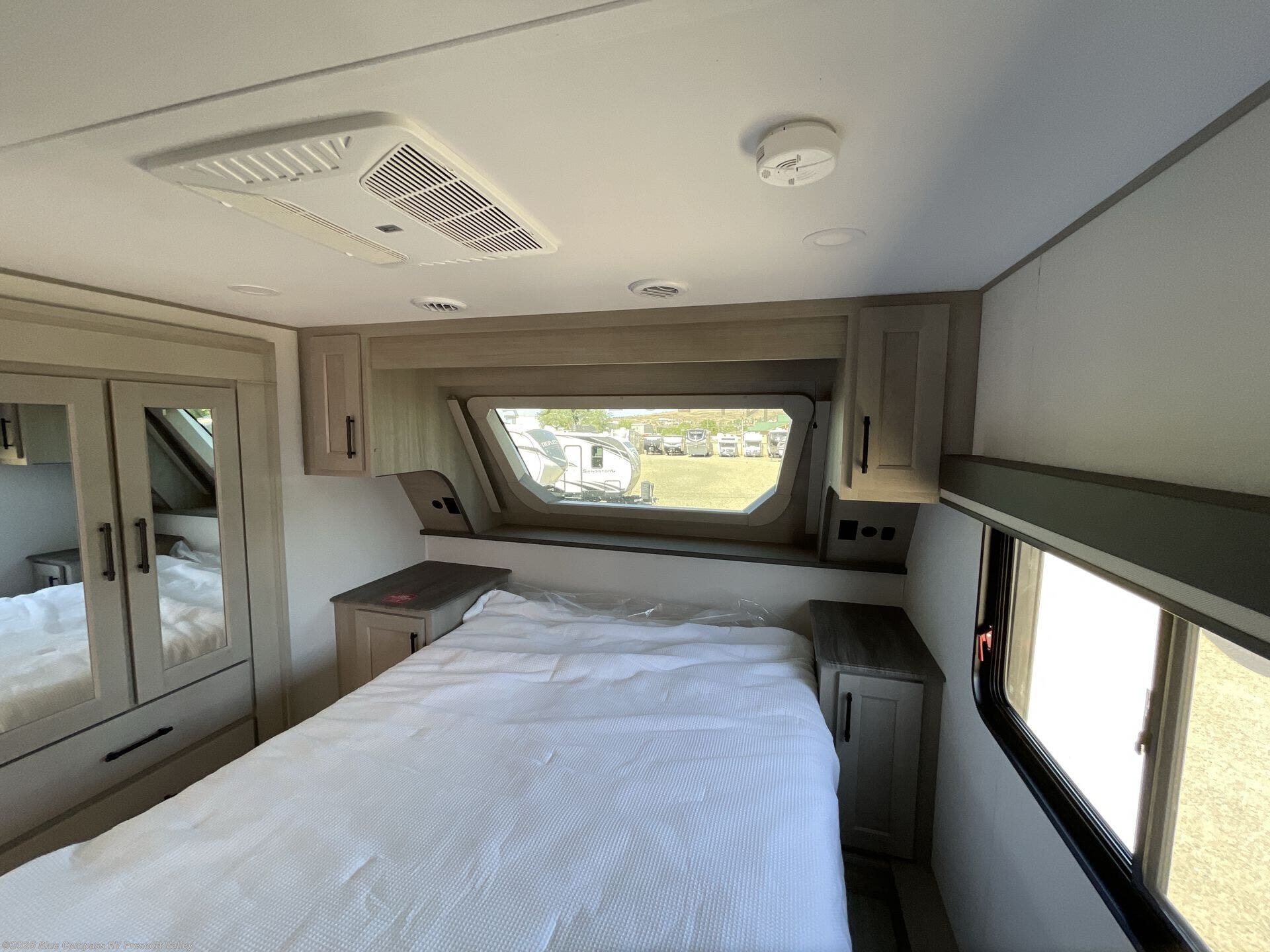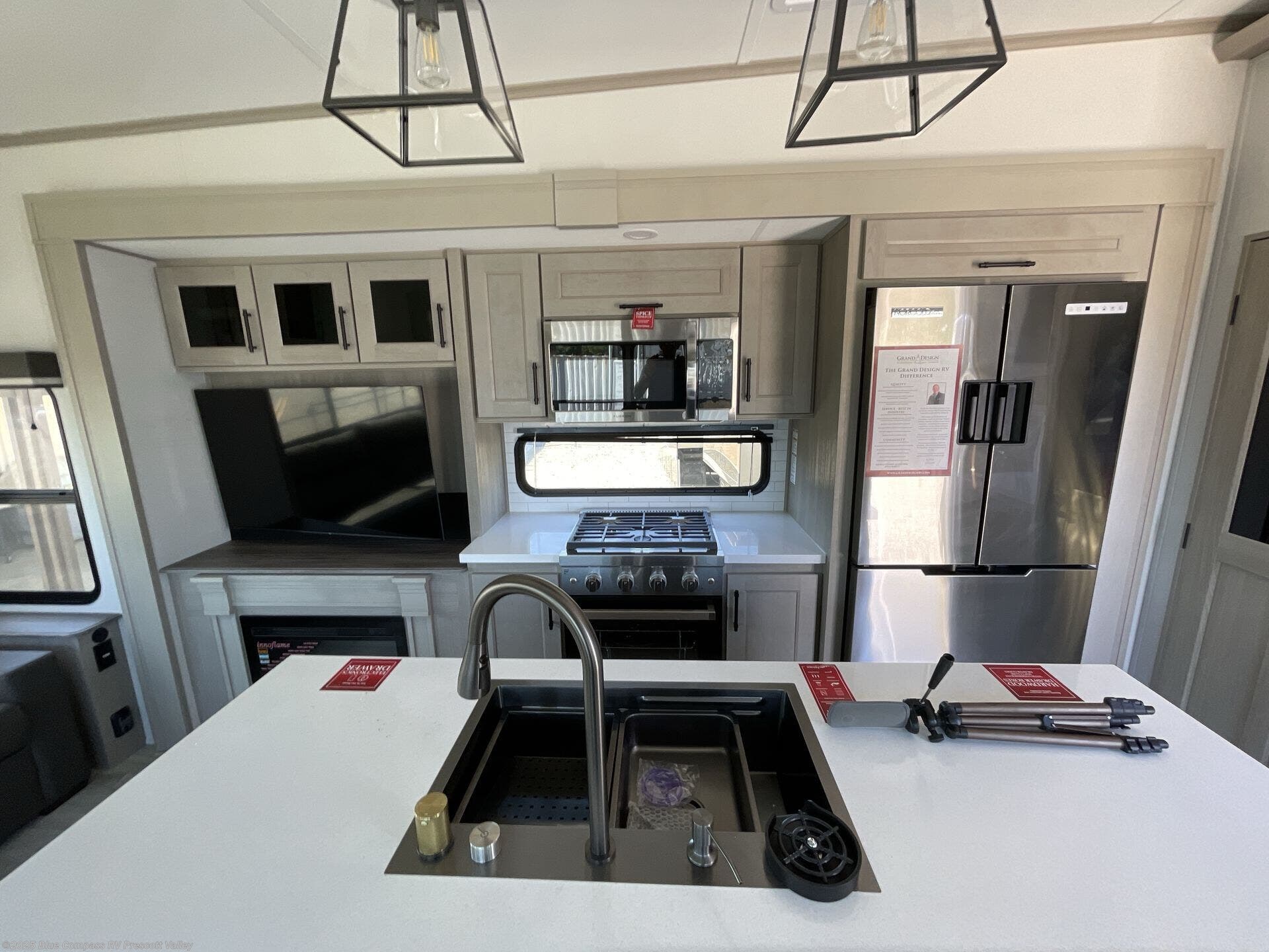 Any Grand Design Influence fifth wheel features five-sided aluminum cage construction with a walk-on roof and a fully enclosed underbelly with heated tanks and storage for all weather camping. For peace of mind, the MORryde CRE3000 Suspension system will provide safe and smooth towing, and the 101" widebody construction offers all the room you need and that is before multiple slides are fully engaged. You will appreciate the Keyed-Alike locks, slam-latch baggage doors with magnetic door catches, exterior security light, and SolidStep entry steps. On the inside, Congoleum flooring, premium roller shades for privacy, a hallway handrail for safety, and nightstands with USB ports to keep all of your electronics fully charged. You will also love the on demand tankless water heater when showering, plus the added heat and ambiance from an electric fireplace, and so much more!