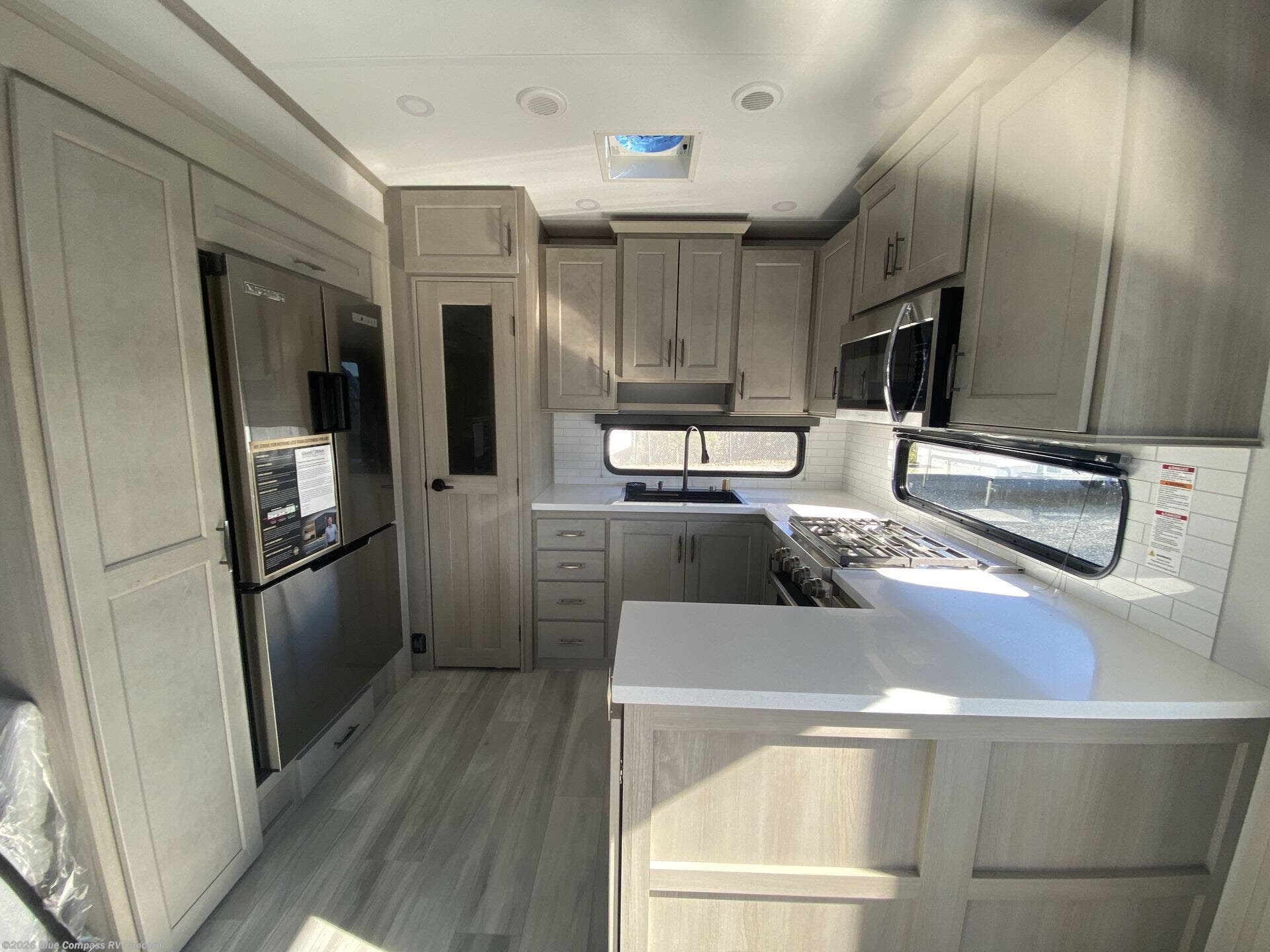 Any Grand Design Influence fifth wheel features five-sided aluminum cage construction with a walk-on roof and a fully enclosed underbelly with heated tanks and storage for all weather camping. For peace of mind, the MORryde CRE3000 Suspension system will provide safe and smooth towing, and the 101" widebody construction offers all the room you need and that is before multiple slides are fully engaged. You will appreciate the Keyed-Alike locks, slam-latch baggage doors with magnetic door catches, exterior security light, and SolidStep entry steps. On the inside, Congoleum flooring, premium roller shades for privacy, a hallway handrail for safety, and nightstands with USB ports to keep all of your electronics fully charged. You will also love the On Demand tankless water heater when showering, plus the added heat and ambiance from an electric fireplace, and so much more!